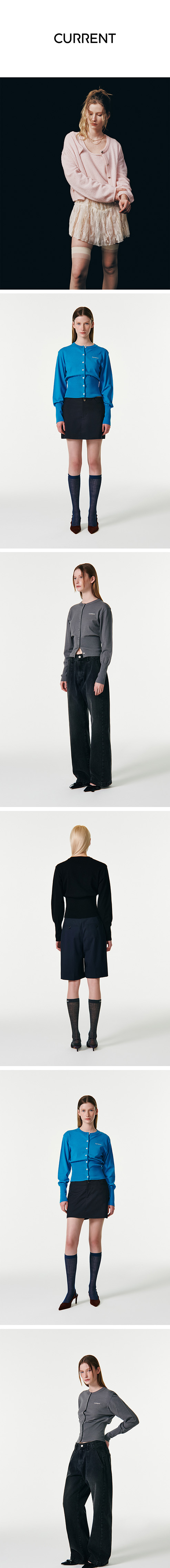 OUTSHELL - RAYON 66% POLYESTER 28% ACRYLIC 6% - 개발원사로 소프트한 터치감과 하이게이지의 FINE 한 표면감 - 클래식한 라운드넥 디자인에 커렌트 로고 자수 포인트 - 밑단 소매를 와이드한 리브 짜임으로 마감하여 안정적이면서 페미닌한 실루엣이 돋보입니다. - 버튼 업 스타일로 단품으로 착용 가능하며 버튼을 오픈하여 다양한 아이템과 레이어드하여 다양한 룩으로 연출 가능합니다. S 총장 51 어깨 43 가슴 44 화장 46.5 M 총장 52 어깨 44 가슴 46.5 화장 61