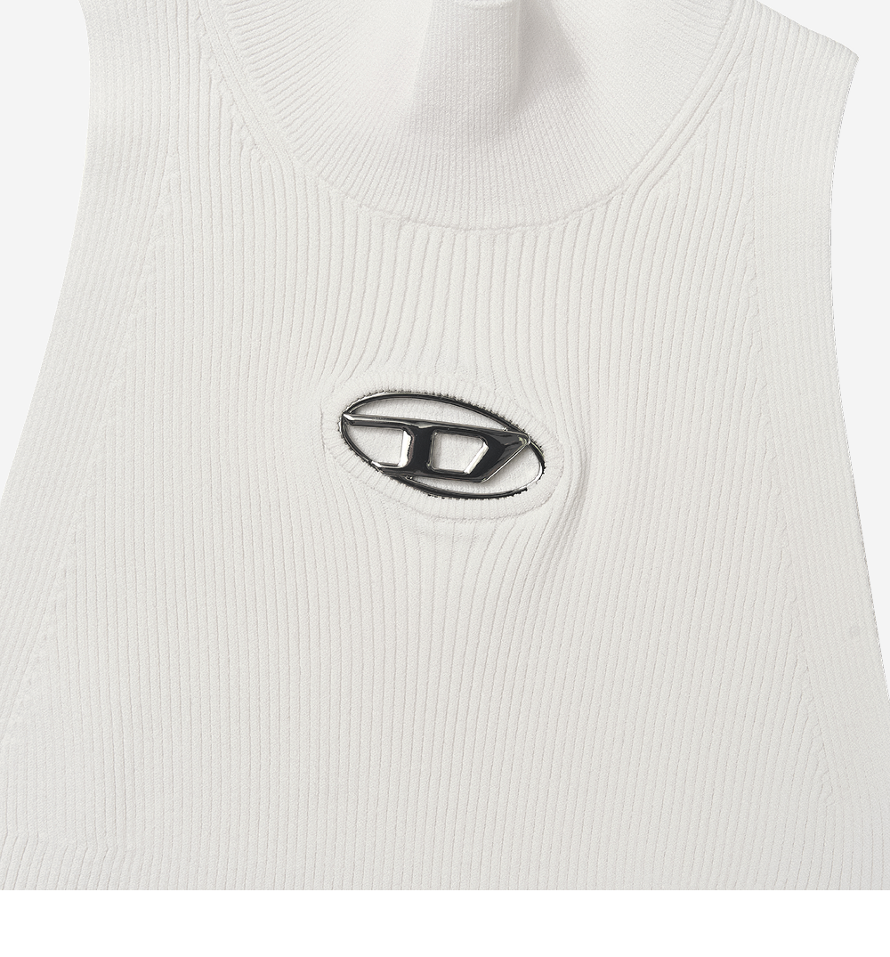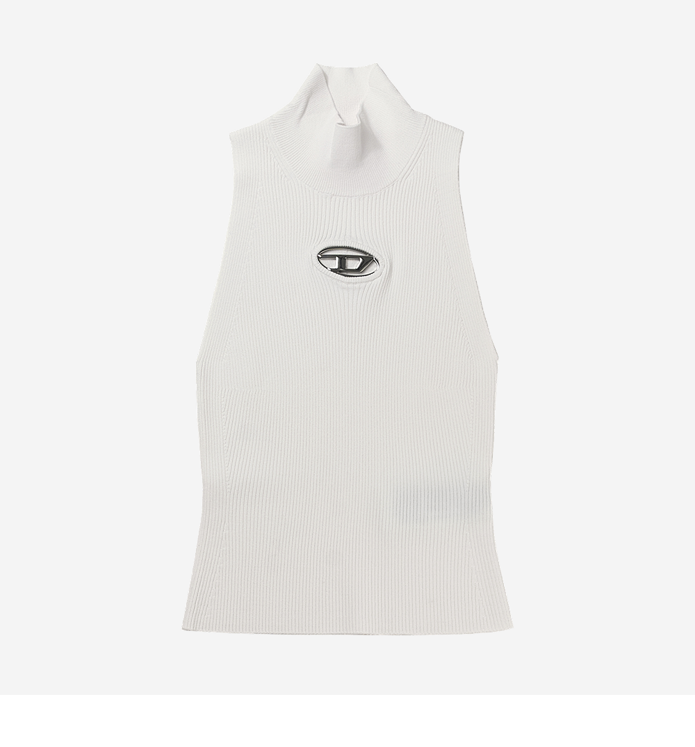 (W) Diesel M-Onervax-Top Ribbed Knit Turtleneck White