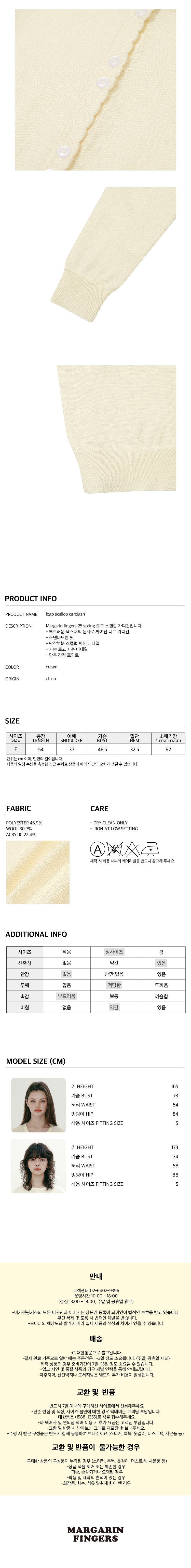 마가린핑거스 로고 스캘럽 가디건 크림
