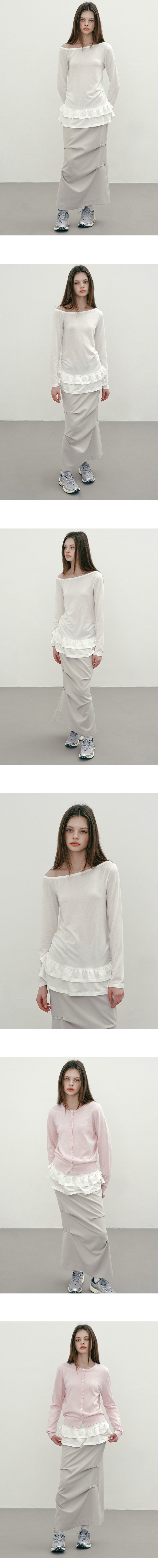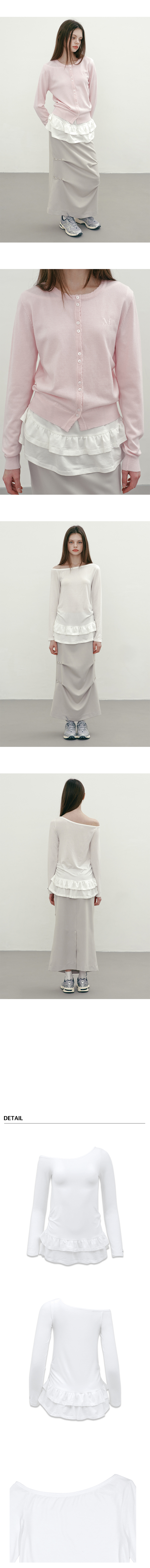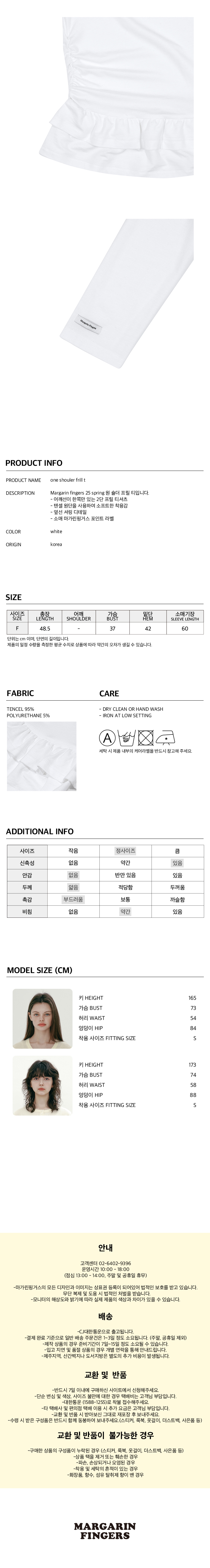 마가린핑거스 원 숄더 프릴 티 화이트