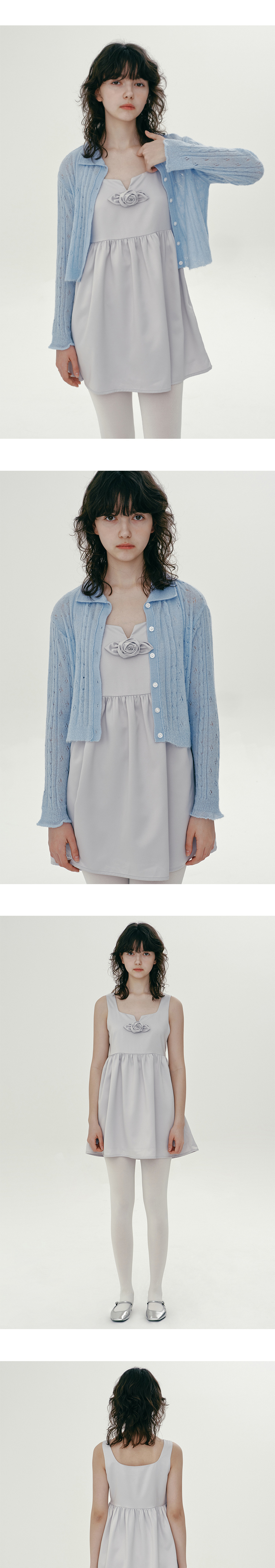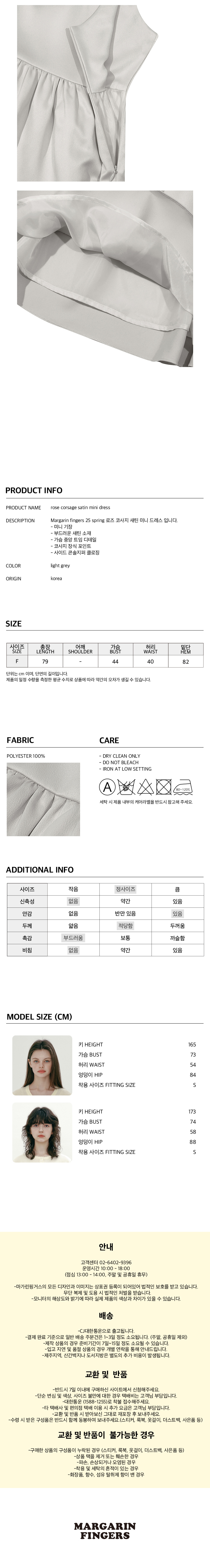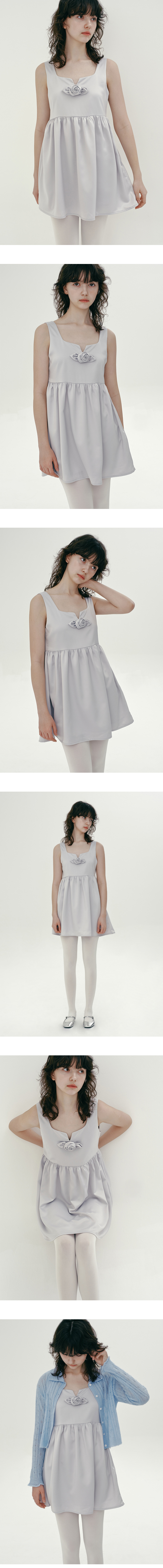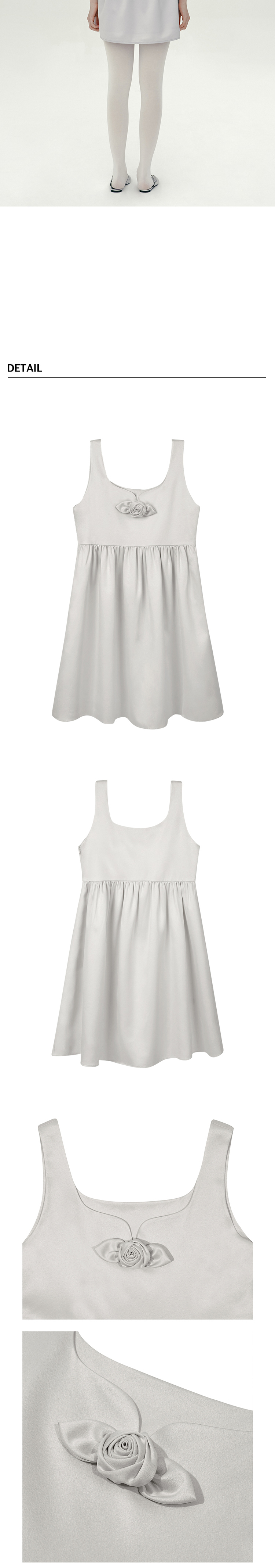 마가린핑거스 로즈 코사지 새틴 미니 드레스 라이트 그레이