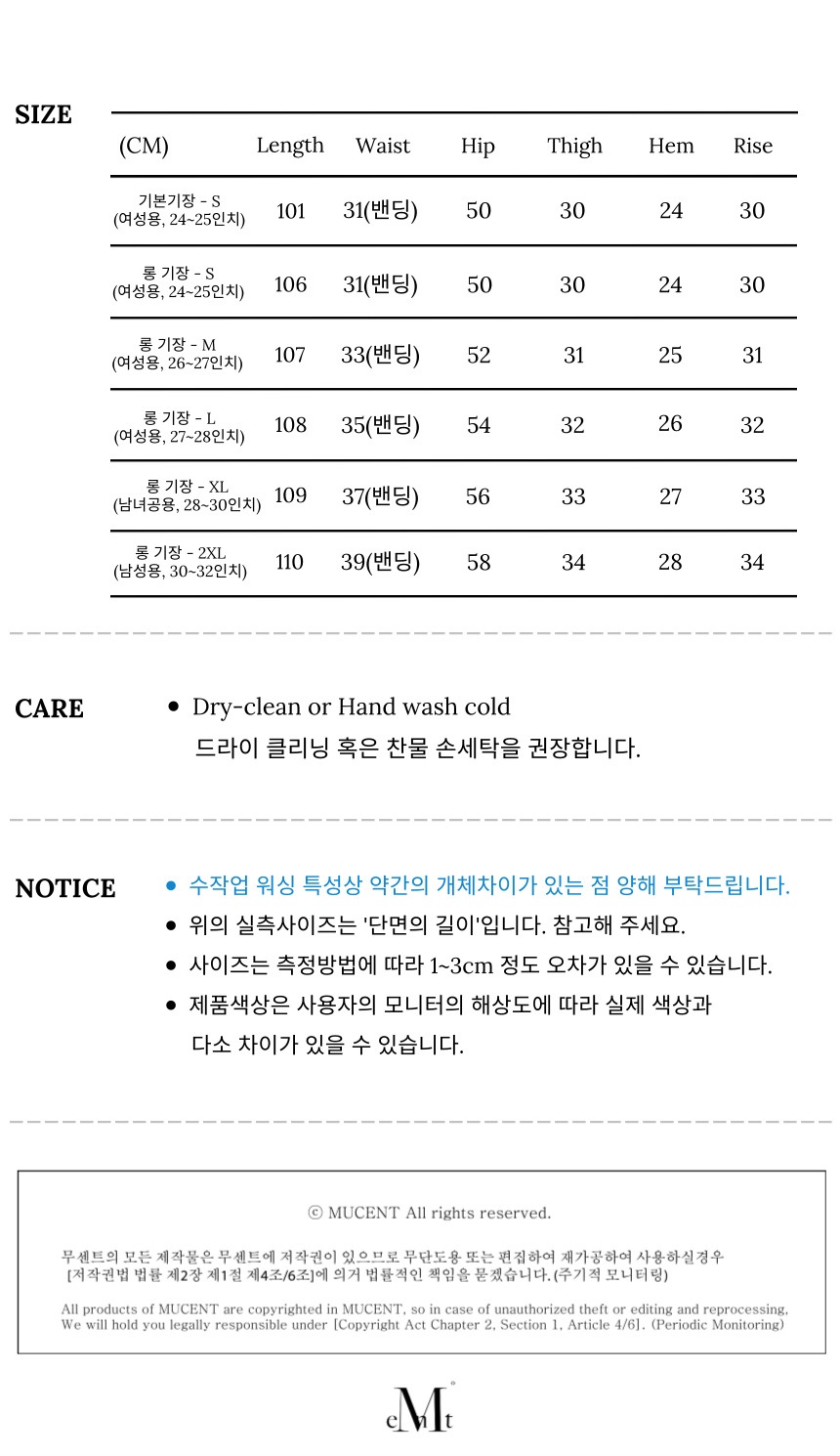 ┃Detail • 와이드하게 떨어지는 실루엣 • 발등을 덮는 여유있는 기장감 • 탄탄한 내구성과 사계절 착용가능한 두께감 • 무센트 시그니처 로고 자수 포인트 • 허리 뒷밴딩으로 편안한 착용감 • 빈티지 무드의 워싱 컬러 • 쉽게 스타일링 가능한 캐주얼한 아이템 ┃Material : Cotton 100% ┃Care : Dry cleaning - 무센트는 말기의 행성인 이 지구에서 지속 가능한 옷들을 고민합니다. 우리는 신념을 소비하는 미닝아웃을 지지합니다.