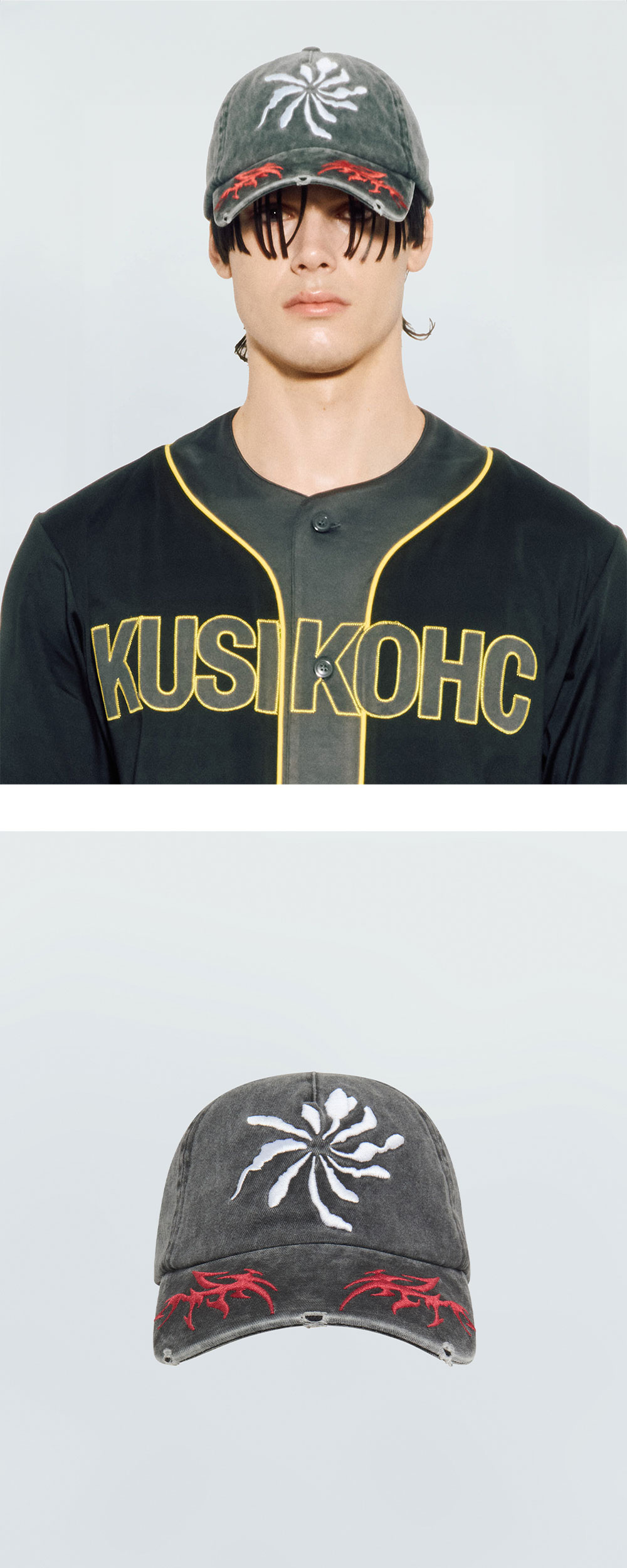 중앙에 그래픽이 포인트인 쿠시코크의 오리가미 캡 블랙입니다. - 레드 스티치 디테일 - 사이즈 조절 가능 - 물 빠진 블랙 컬러 - 해진듯한 디테일