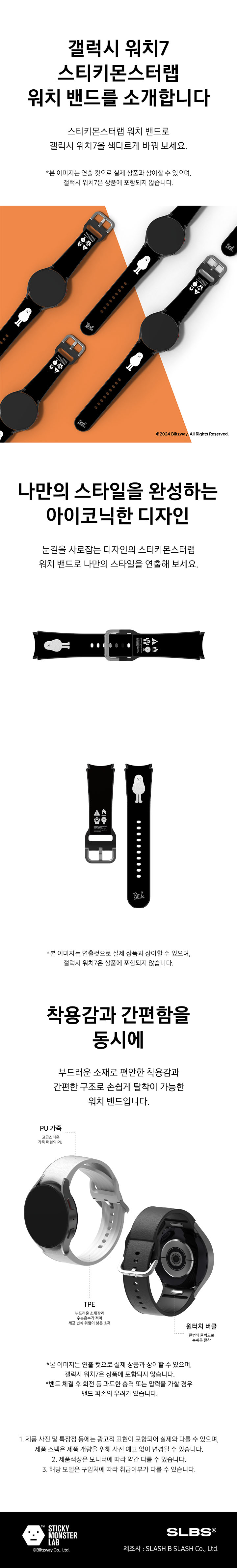 에스엘비에스 스티키몬스터랩 블랙 워치 밴드 갤럭시 와치 7