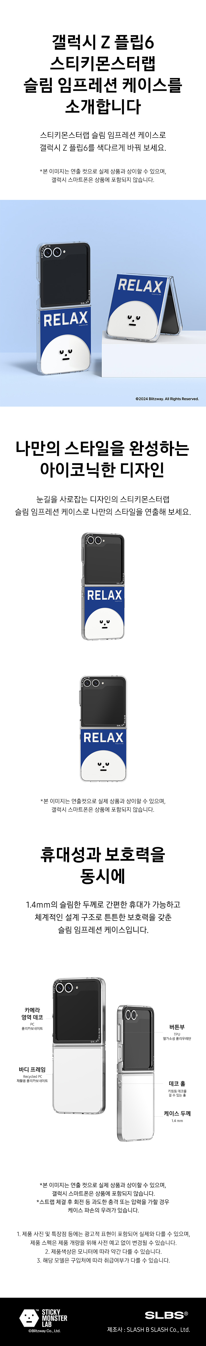 에스엘비에스 스티키몬스터랩 릴렉스 슬림 임프레션 케이스 갤럭시 Z 플립6