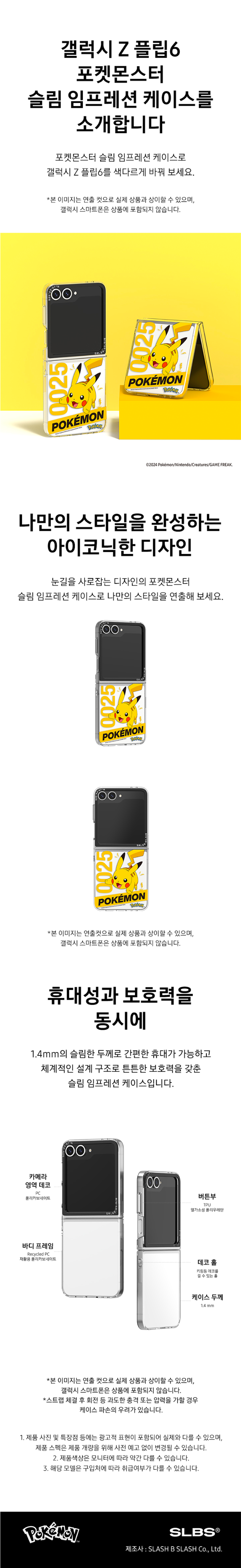 에스엘비에스 포켓몬 피카츄 슬림 임프레션 케이스 갤럭시 Z 플립6