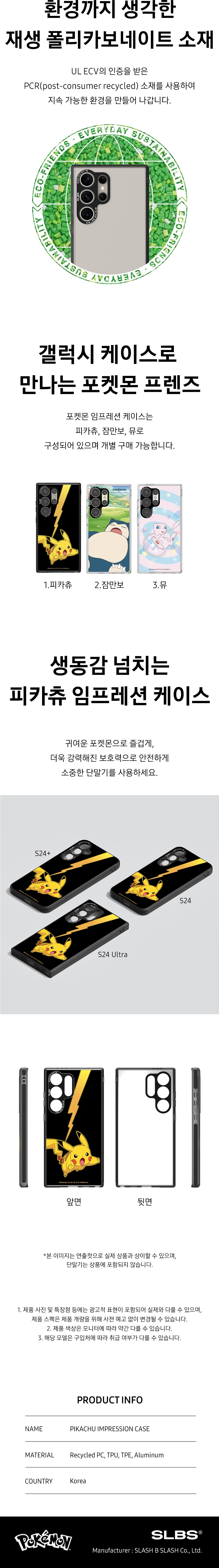 에스엘비에스 포켓몬 피카츄 임프레션 케이스 갤럭시 S24 시리즈