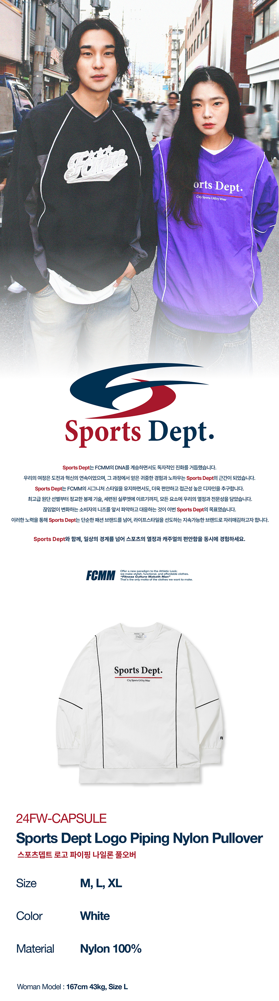 스포츠뎁트 로고 파이핑 나일론 풀오버 화이트