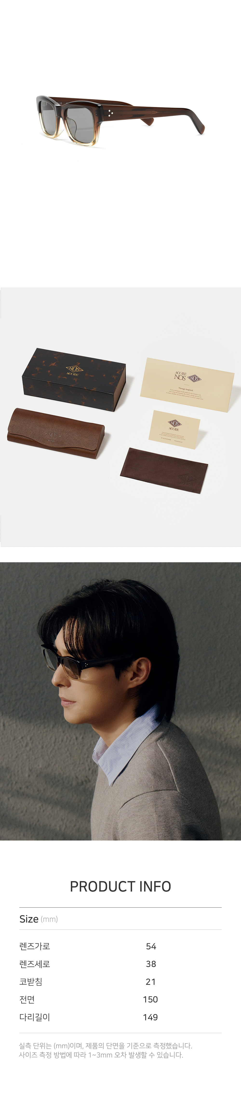 ACCRUE NOS(New old stock)는 “Vintage Inspired.” 캐치프레이즈 아래, 오랜 시간 동안 잠들어있던 과거의 오리지널리티를 그대로 재현하고, 그 속에서 새로운 가치를 창조하는 것을 목표로 합니다. NOS-13은 1900년대 중반 프렌치 웰링턴 선글라스를 베이스로 디자인되었습니다. 아메리칸 웰링턴에 비해 더욱 과감한 라인과 상단 경사각, 둥근 모서리 마감이 특징입니다.