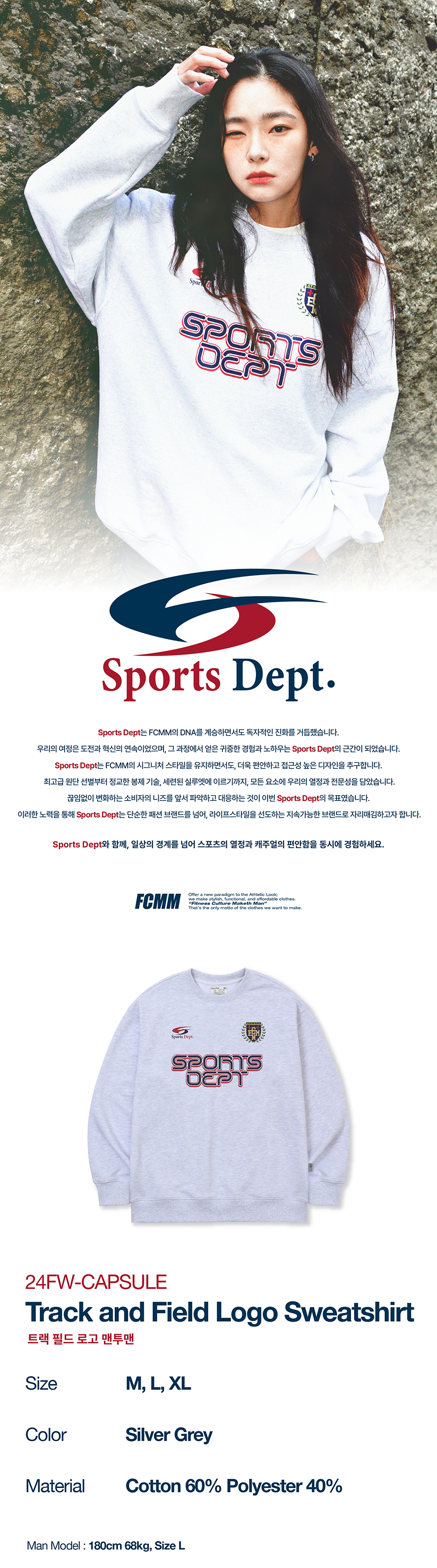스포츠뎁트 트랙 필드 로고 맨투맨 실버 그레이