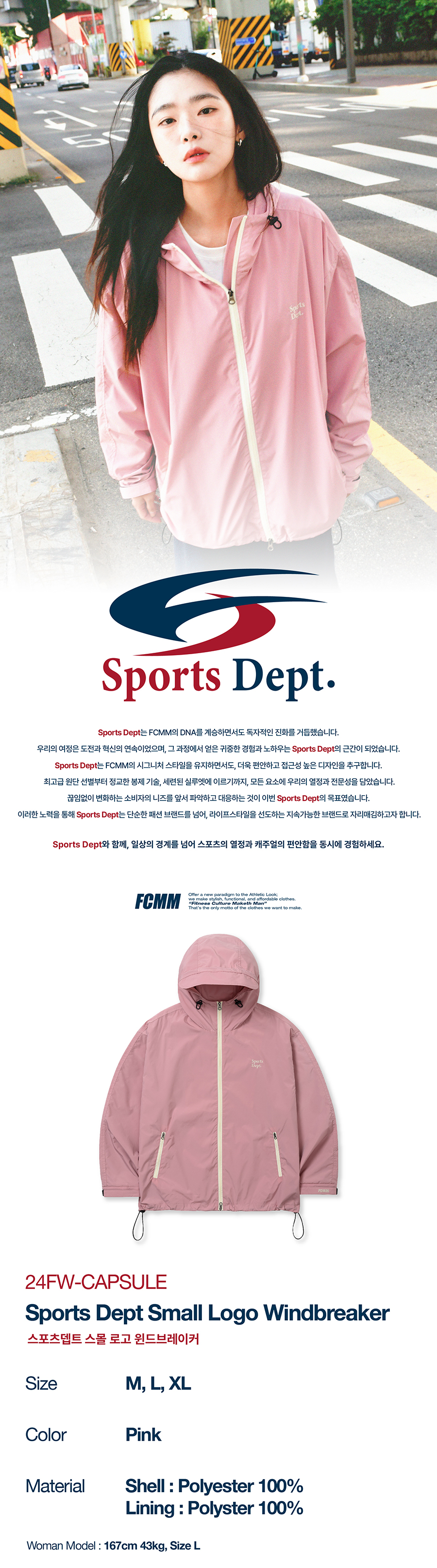 스포츠뎁트 스몰 로고 윈드브레이커 핑크
