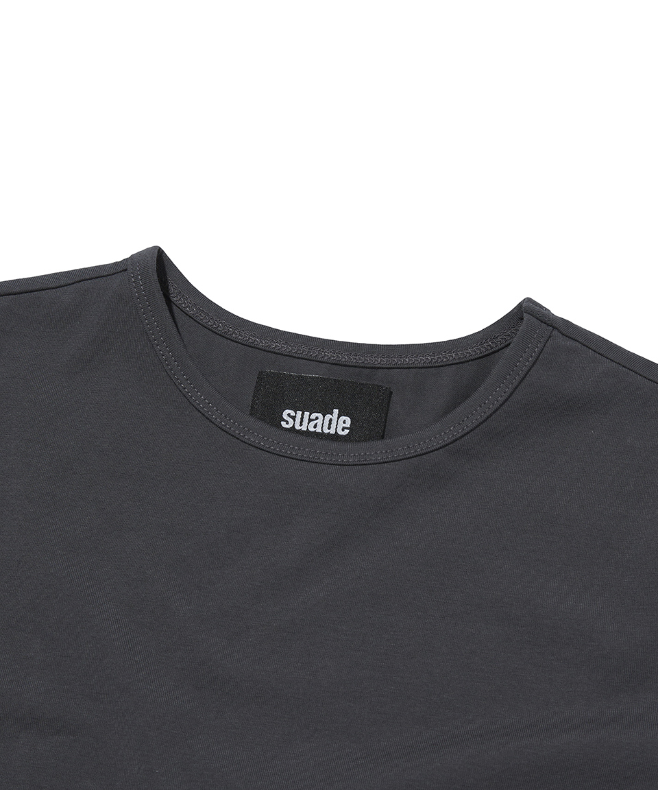 스웨이드 베이직 크롭 탑 차콜 그레이