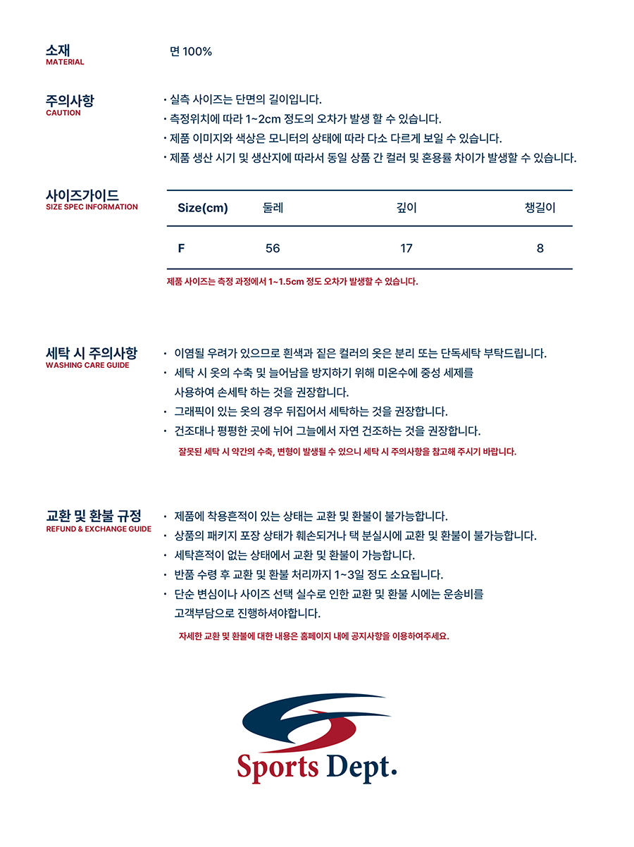 실측 단위는 cm이며, 제품의 단면을 기준으로 측정했습니다.