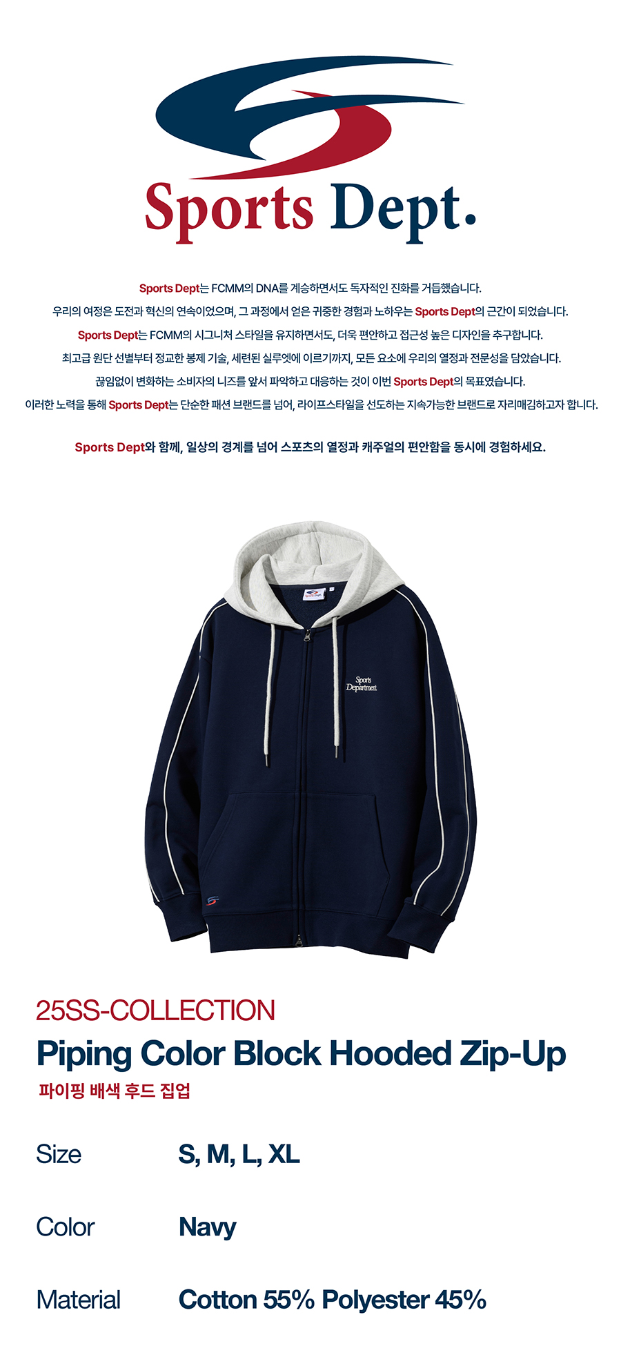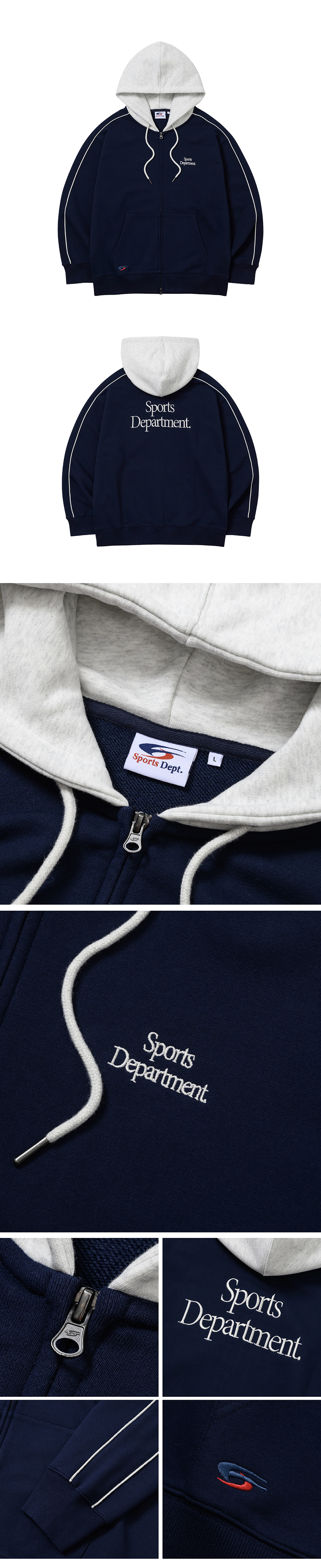 스포츠뎁트 파이핑 배색 후드 집업 네이비