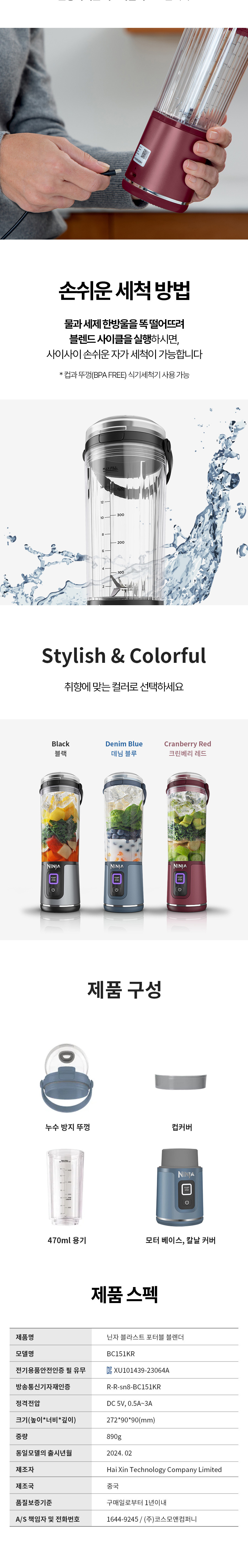 샤크닌자 닌자 무선 블라스트 포터블 블렌더 BC151KR 네이비