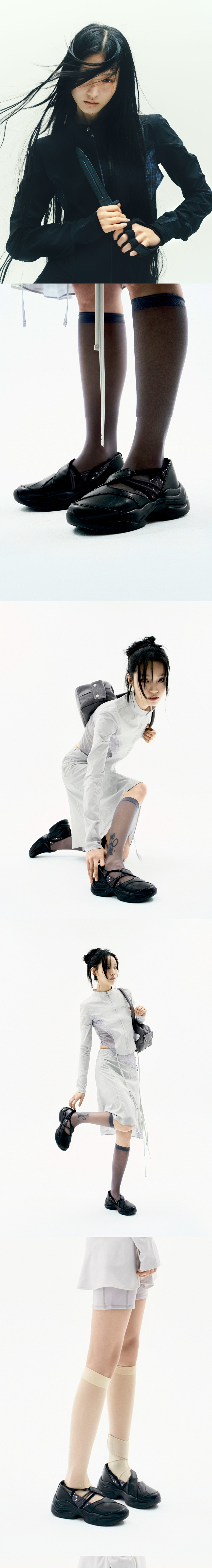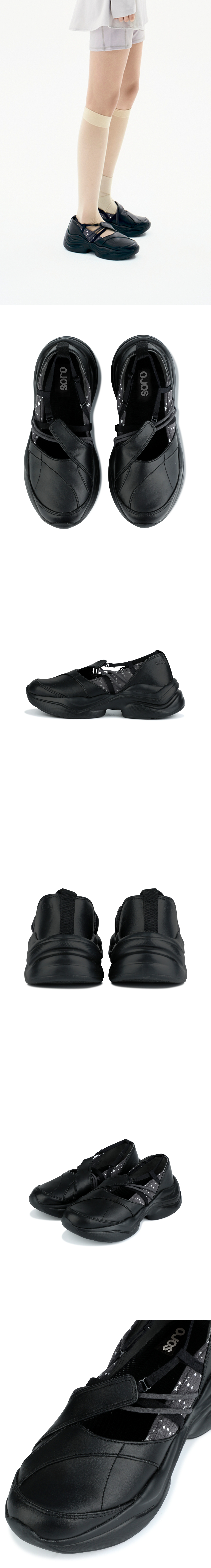 2way스트랩 디테일의 메리제인 플랫폼 스니커즈 | 발레 토슈즈 디자인 | 구조적인 파팅 라인 | 사이드 시즌 소재 배색 | 조절 가능한 밴드 스트랩으로 착용자의 발 모양에 맞게 조정 가능 | 밴드 스트랩 Z링 클로저 | 엠보 쿠션으로 편안한 착용감의 인솔 사양 | 4.5cm 플랫폼 사양으로 안정감과 각선미 제공 | 인솔 OJOS 로고 프린팅 | 사이드 OJOS 로고 음각 디테일 | 유니크한 볼륨감의 플랫폼 아웃솔 사용 * 2023SS [Strap Embossed Toe Shoes] 디벨롭 아이템 * Model is 168cm and wears size 240.