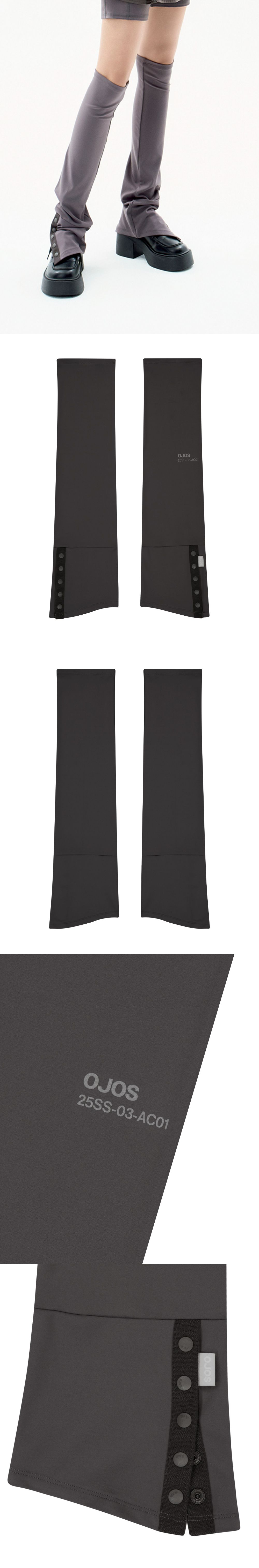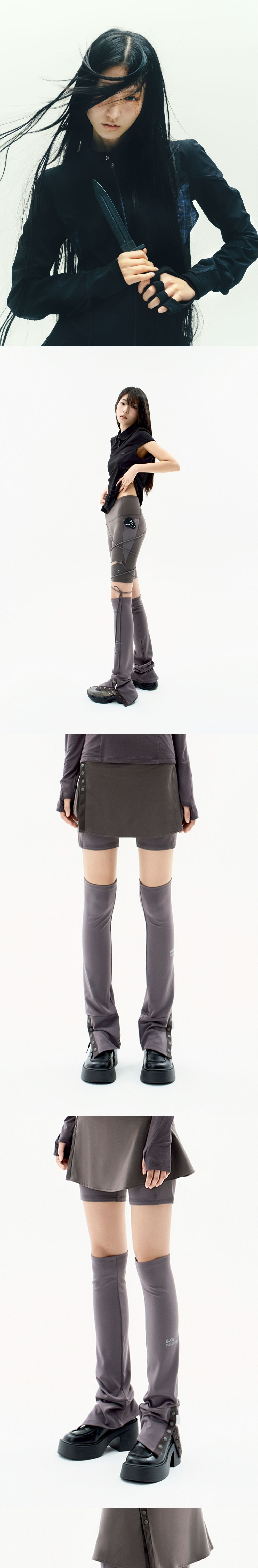 허벅지부터 떨어지는 세미 부츠컷 라인의 싸이 레그워머 | 부츠컷 라인으로 떨어지는 타이트 핏 | 4way 스트레치 레깅스 소재 사용으로 편안한 착용감 | UV차단 및 흡한속건의 creora® 소재사용 | 방해없이 일자로 떨어지는 마감과 부츠컷 라인으로 각선미 연출 | 밑단 트임이 들어간 부츠컷 핏이 신발을 덮으므로써 보다 더 길어보이는 다리라인 효과 | 스냅 버튼을 통해 원하는 트임 양 조절 가능 | 쇼츠 기장감인 [Button Slit Leg Warmer] 와 조화로운 스타일링 가능 | 왼쪽 다리 시즌 넘버 필름 디테일 * 동시즌 [Button Slit Skirt Shorts]와 셋업 아이템 * Model is 168cm and wears size 1.