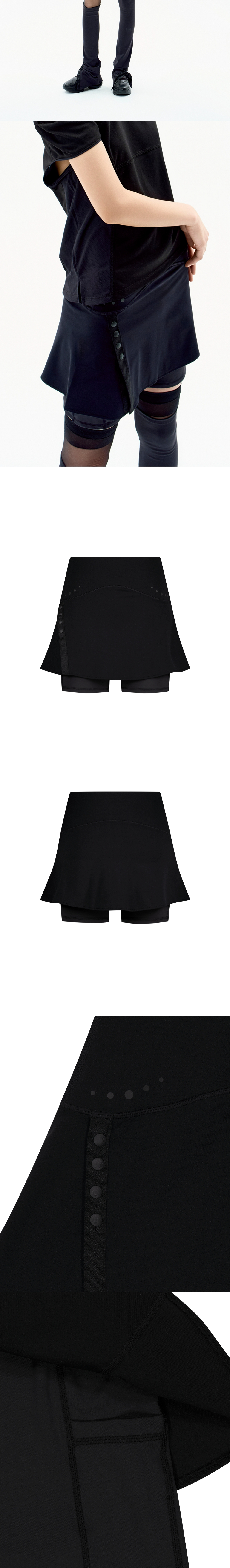 이너 쇼츠가 내장 된 스포츠 미니 스커트 | 미니기장감의 타이트 핏 | 4way 스트레치 레깅스 소재 사용으로 편안한 착용감 | UV차단 및 흡한속건의 creora® 소재사용 | 트임 디테일로 액티브한 활동성 제공 | 스냅 버튼을 통해 원하는 트임 양 조절 가능 | 쇼츠 기장감으로 페미닌한 실루엣 제공과 더불어 [Button Slit Leg Warmer] 와 조화로운 스타일링 가능 | 간단한 수납이 가능한 이너쇼츠 사이드 포켓 | 허리 양 사이드 그래픽 필름 디테일 * 동시즌 [Button Slit Leg Warmer]와 셋업 아이템 Model is 168cm and wears size 1.
