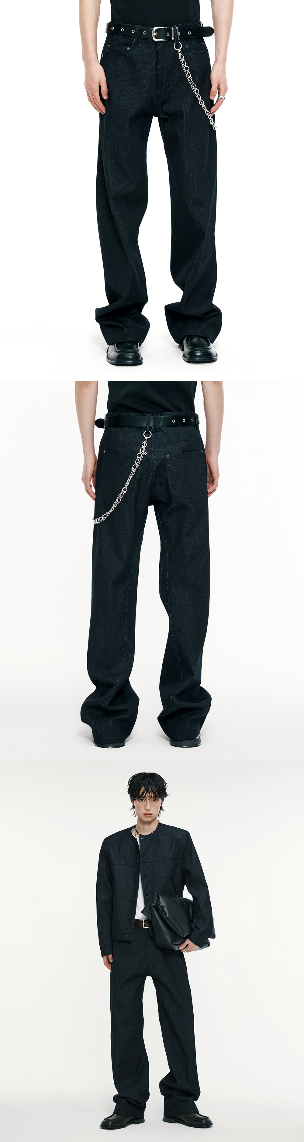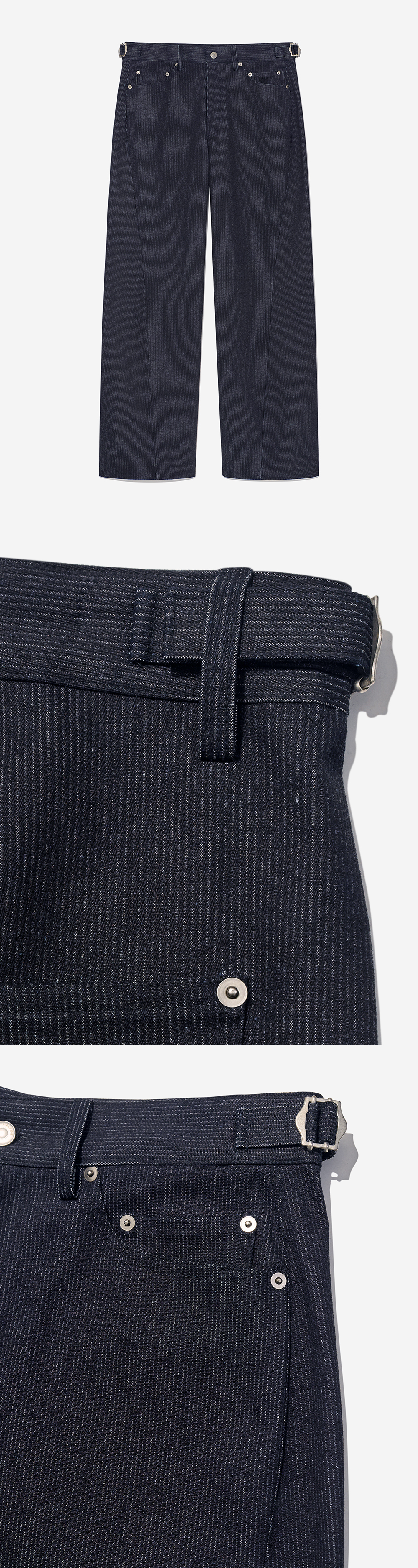 입체적인 트위스트 형태의 심라인으로 제작된 스트레이트 팬츠입니다. 골지 형태의 데님 소재를 사용하여 캐주얼하면서도 고급스러운 무드를 보여줍니다. 레귤러한 실루엣의 스트레이트 팬츠로 편하면서도 스타일리시한 연출이 가능한 제품입니다. -DETAIL- 레귤러 핏 입체적인 트위스트 심라인 허리 양 사이드 조절이 가능한 벨티드 디테일 리벳 디테일 -model-_x000B_ 187cm / 가슴둘레 91cm / 허리둘레 69cm / 엉덩이둘레 87cm - 2사이즈 착용_x000B_ * 모델의 경우 총장이 5cm 더 길게 제작된 제품을 착용 *