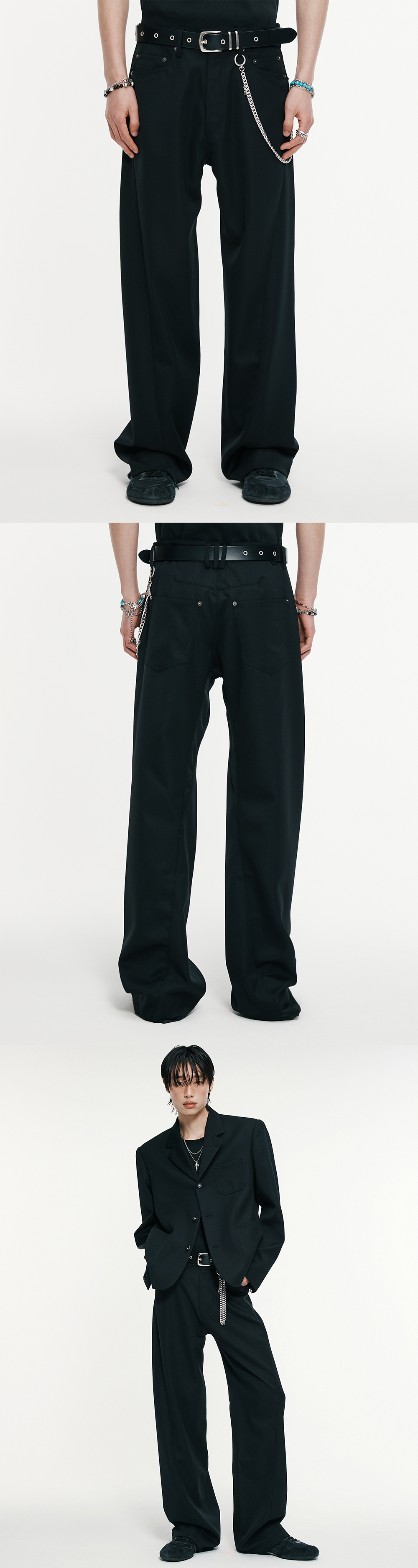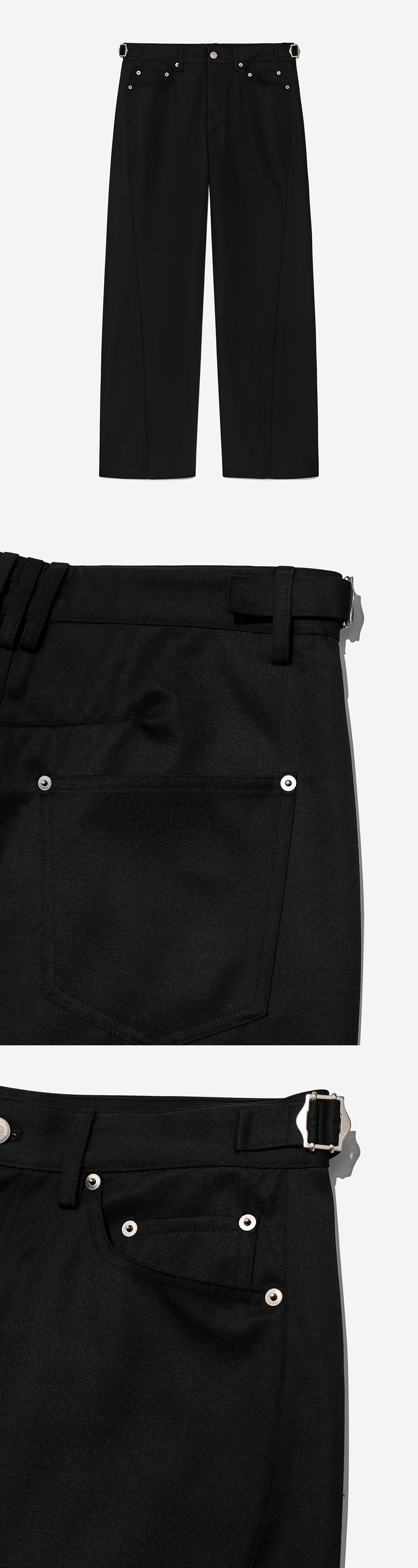 입체적인 트위스트 형태의 심라인으로 제작된 스트레이트 팬츠입니다. 탄탄한 울 혼방 소재를 사용하여 고급스러운 무드를 보여줍니다. 레귤러한 실루엣의 스트레이트 팬츠로 편하면서도 스타일리시한 연출이 가능한 제품입니다. -DETAIL- 레귤러 핏 입체적인 트위스트 심라인 허리 양 사이드 조절이 가능한 벨티드 디테일 리벳 디테일 -model-_x000B_ 187cm / 가슴둘레 91cm / 허리둘레 69cm / 엉덩이둘레 87cm - 2사이즈 착용_x000B_ * 모델의 경우 총장이 5cm 더 길게 제작된 제품을 착용 *