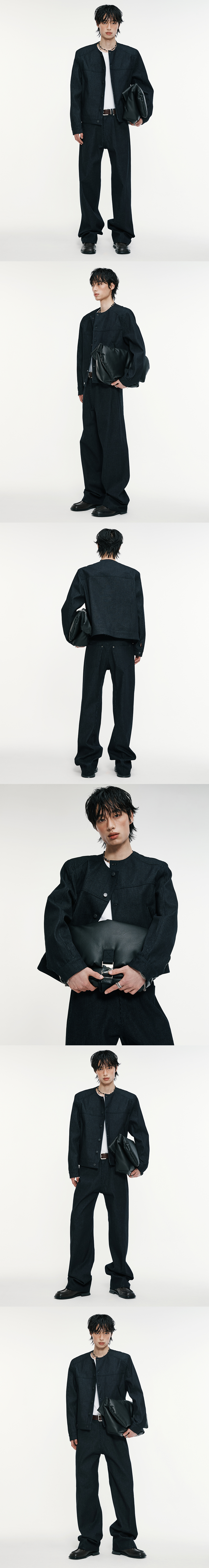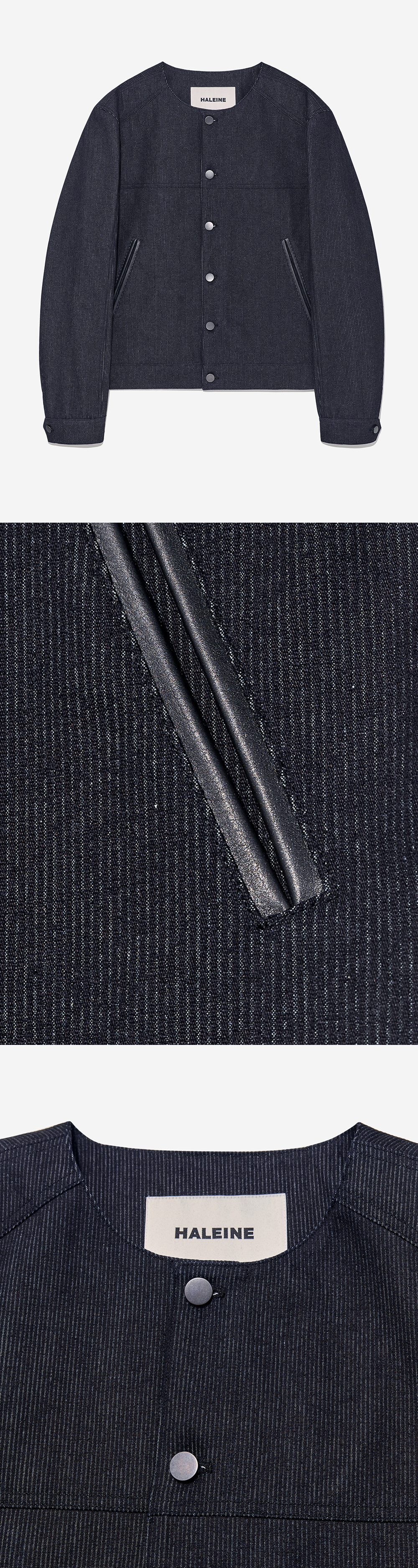 Haleine Cropped Collarless Jacket Indigo (WJ113)
