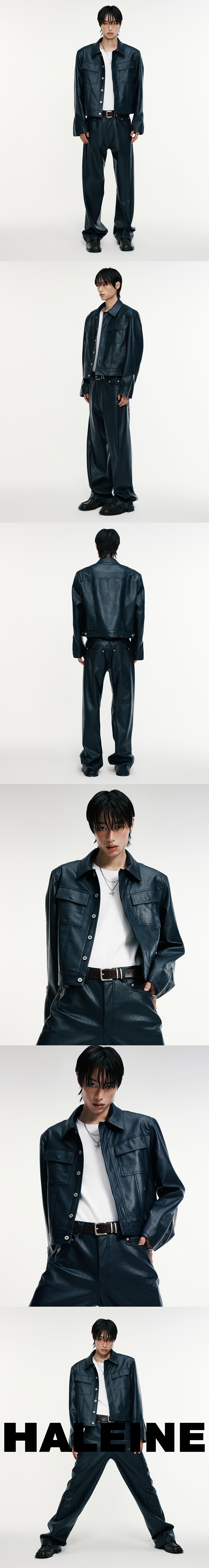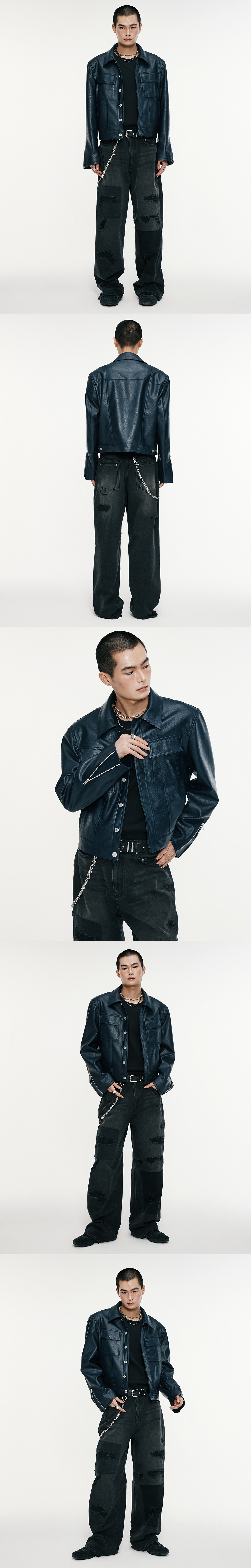 은은한 광택감과 자연스러운 질감이 매력적인 페이크 레더로 제작된 레더 자켓입니다. 트러커의 형태를 레더 자켓으로 풀어낸 제품으로써, 크롭하면서 래귤러한 실루엣이 트렌디한 무드를 연출합니다. -DETAIL- 스프레드 카라 전면부 히든 버튼 후면에 조절 가능한 벨트 디테일 소매 지퍼 트임 어깨 패드 공정을 통한 직각 실루엣 연출 -model-_x000B_ 184cm / 가슴둘레 83cm / 허리둘레 70cm / 엉덩이둘레 90cm - 2사이즈 착용