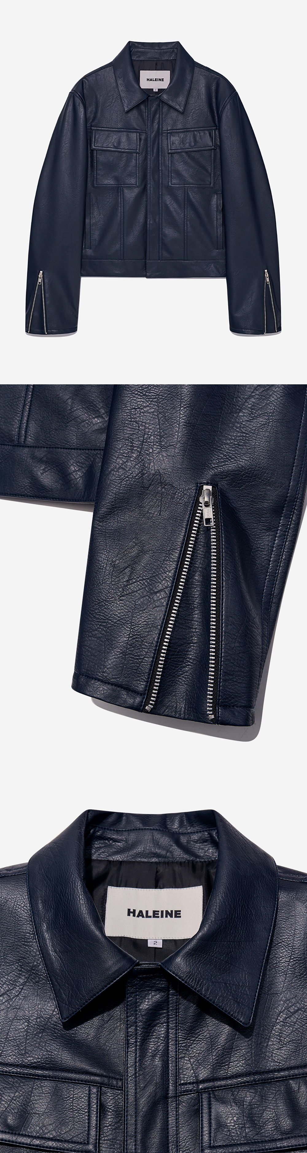 알렌느 트러커 인조 가죽 자켓 네이비