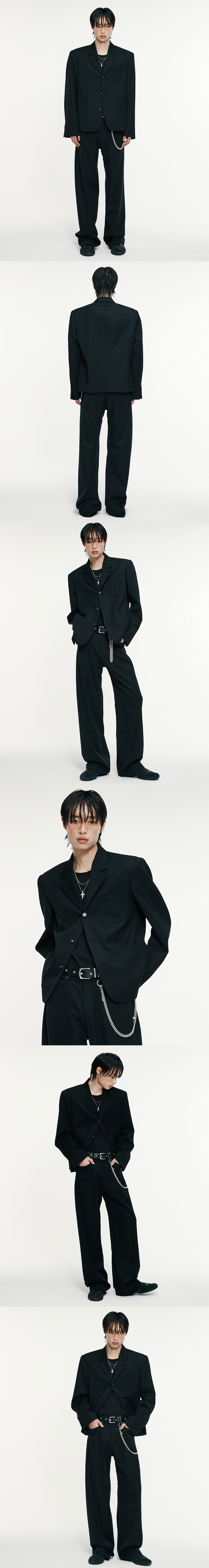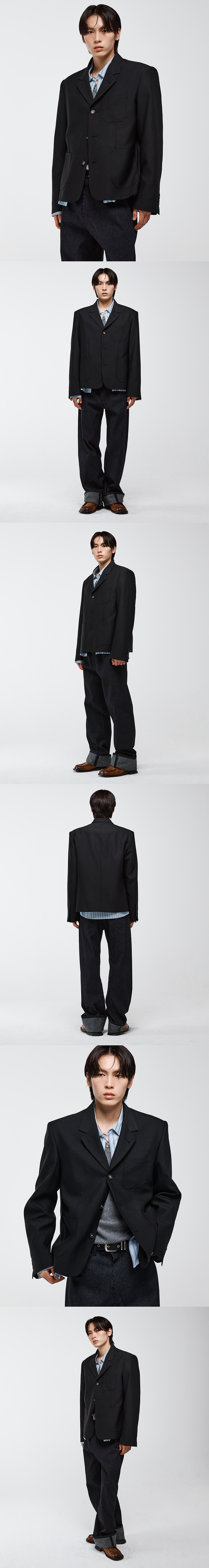 Haleine 3-Button Wool Cropped Blazer Black (WJ101)