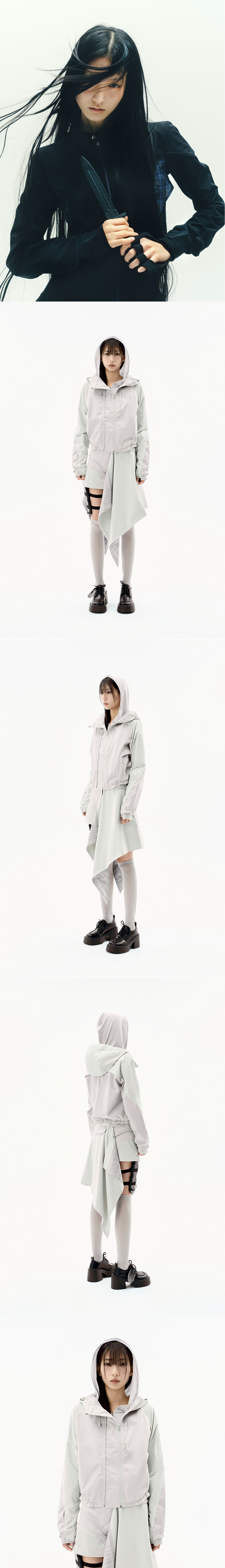 방수가 가능한 크롭핏의 하드 쉘 자켓 | 크롭핏 (1,2사이즈) / 오버핏 (3사이즈) | 패널 및 레이어드 구조 | 신축성이 좋은 스트레치 소재로 유연한 착용감 | 생활 방수가 가능한 하드 쉘 자켓 | 전면 가슴과 착우 소매쪽 보조포켓 (소매 보조 포켓-1,2사이즈 에어팟 크기 소지품 수납 가능 / 3사이즈 카드 수납 가능) | 후면 대용량 포켓으로 수납 용이 | 더블 모션 후드로 핏 조절 용이 | 소매단과 밑단 밴드 셔링 디테일 | 전면 OJOS 로고 전사 | 사이드 포켓 방수지퍼 및 폴러 마감 | 전면에 1-way 방수지퍼 및 풀러 마감 *Model is 168cm and wears size 2.
