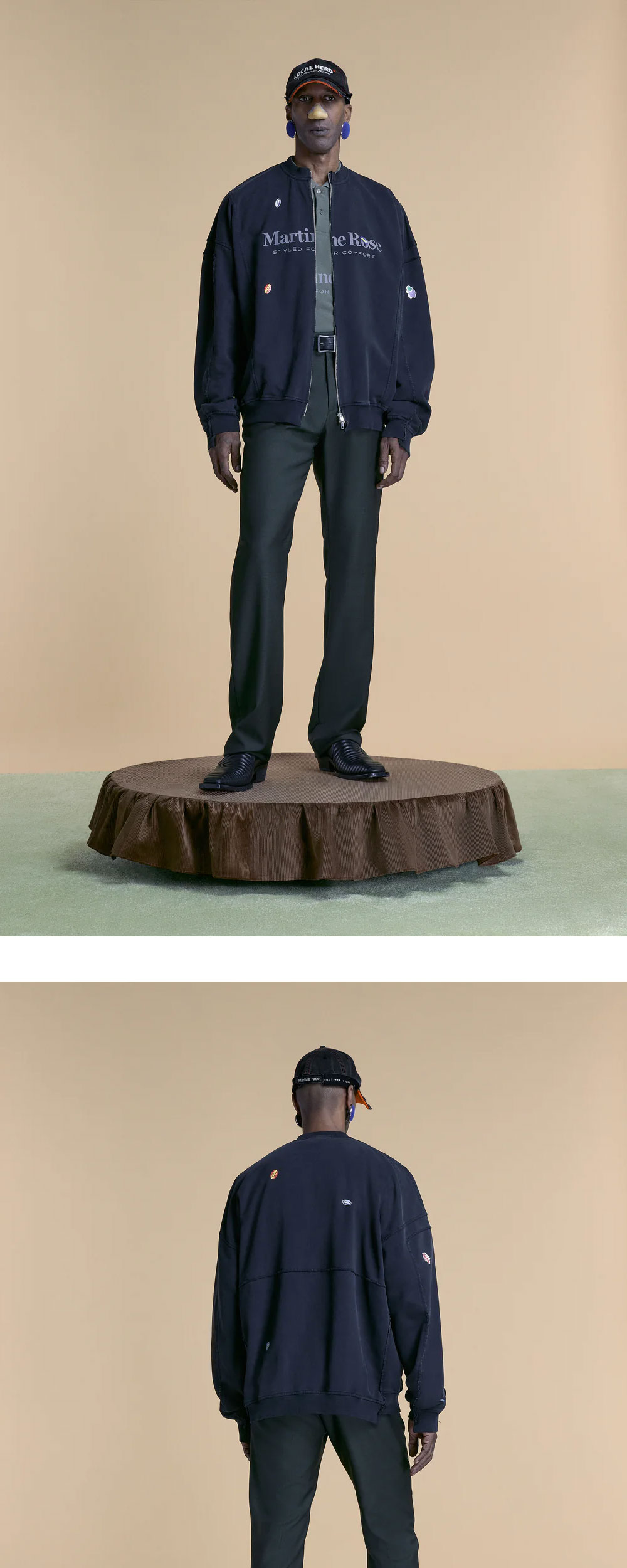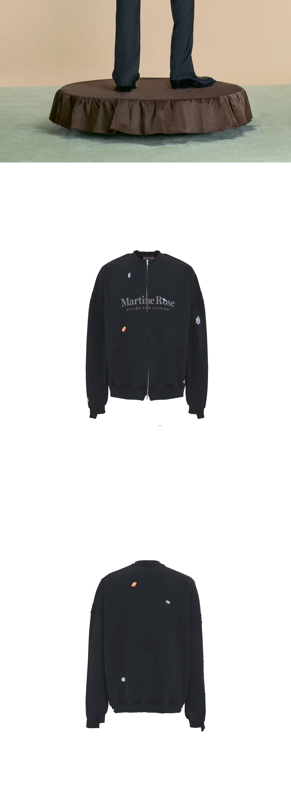탄력 있는 커프스와 가장자리가 주름진 밑단이 특징인 마틴 로즈의 집업 크루 블랙입니다. - 워싱된 블랙 컬러 - 루즈핏 크루넥 - 중앙 지퍼 - 패널링 - 가슴 부분의 스크린 프린트 시즌 로고 - 시즌 브랜드 과일 스티커