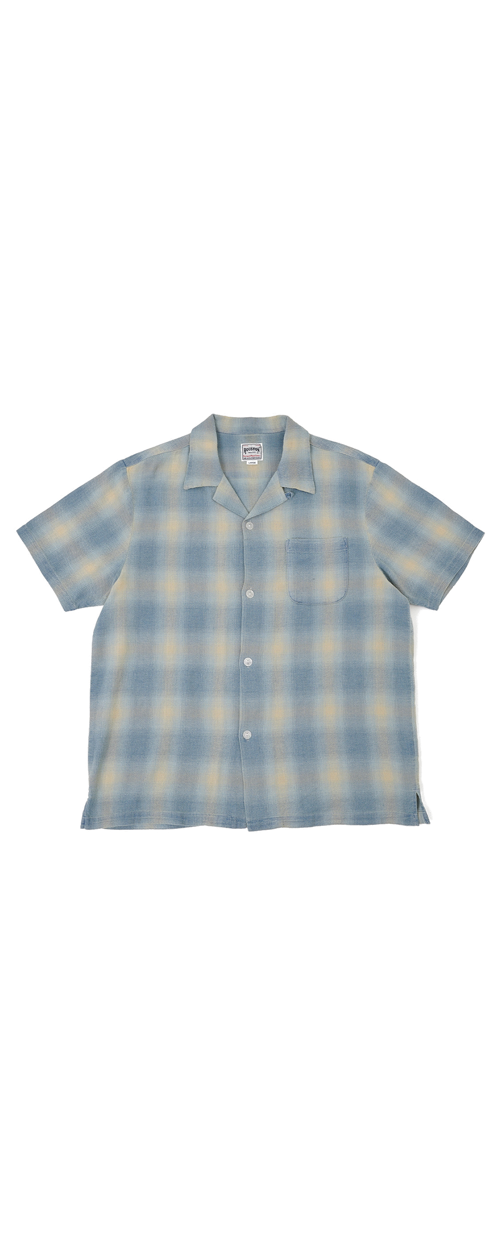 Houston Japan 41165 Indigo HB Ombre Check S/S Shirt - Indigo Vintage Wash 인디고 헤링본 능직으로 제작된 옴브레 반팔 셔츠입니다. 인디고 헤링본 특유의 내구성이 뛰어나고 부드러운 소재감과 그라데이션으로 떨어지는 매력적인 컬러가 특징입니다. 오픈 카라 형태로 목 부분의 버튼을 사용하여 개폐가 가능합니다. 프론트 왼측에 포켓이 배치되어 있어서, 선글라스 등 소지품의 수납에 용이 가능합니다. * Cotton 100% * 빛에 의한 제품의 색감 차이가 존재 할 수 있습니다. * Made in China