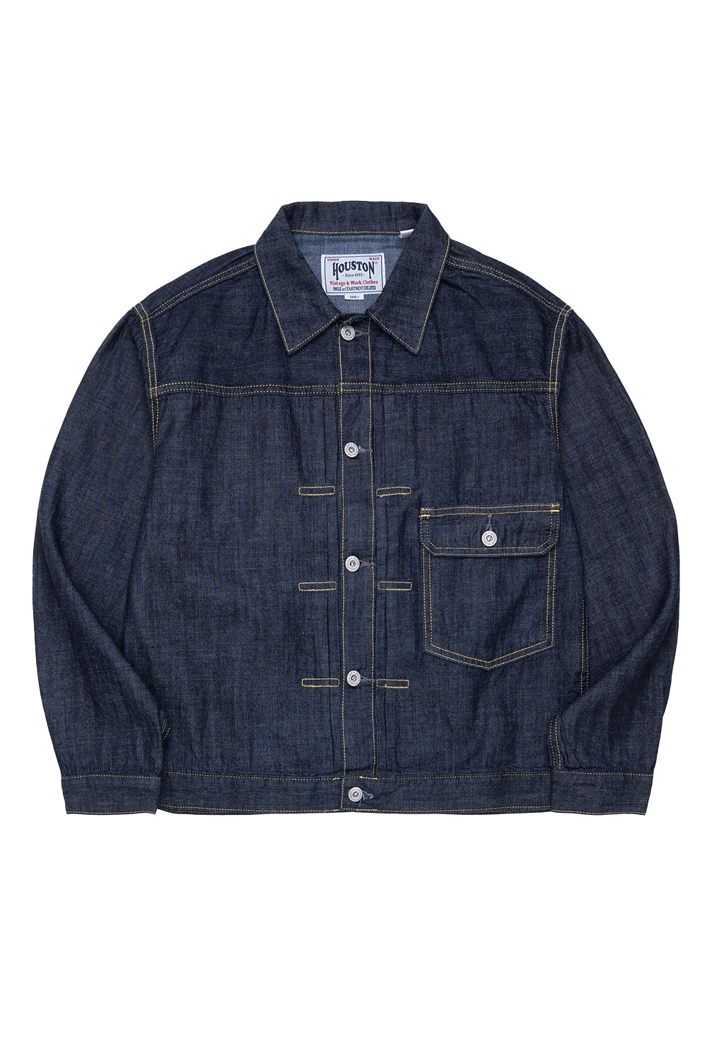 Houston Japan 51498 US Cotton Denim Shirt Jacket - Indigo Vintage Wash USA 코튼을 사용한 클래식한 1st 타입의 트러커 자켓입니다. 8oz 의 얇은 원단으로 셔츠 느낌으로 착용이 가능합니다. 버튼과 리벳은 일본제를 사용하였고, T-Back 사양을 적용하였습니다. 착용감은 셔츠 자켓이지만, 봉제나 부자재는 오리지널을 충실하게 재현했습니다. *Cotton 100% * 빛에 의한 제품의 색감 차이가 존재 할 수 있습니다. * Made in China
