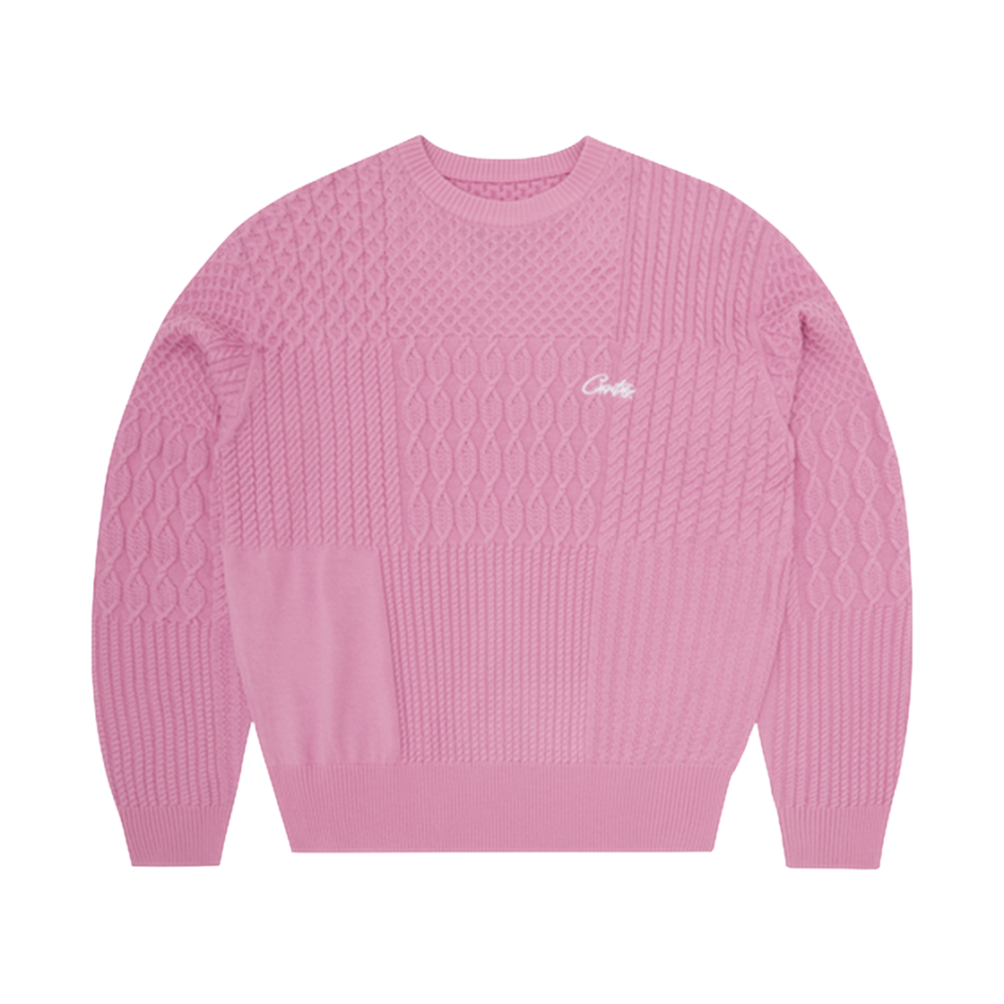 Corteiz Paneled Multi Knit Sweater Pink