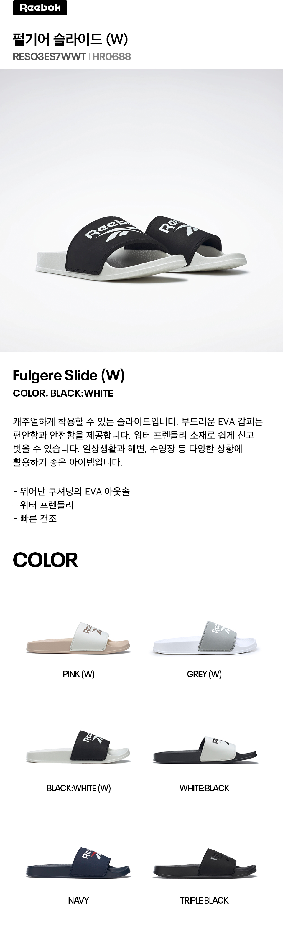 리복 펄기어 슬라이드W 블랙 화이트