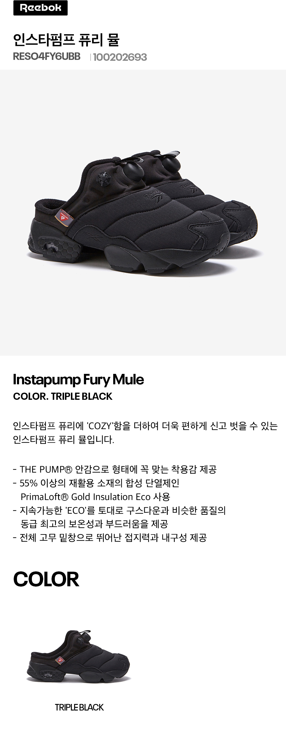 리복 인스타펌프 퓨리 뮬 트리플 블랙