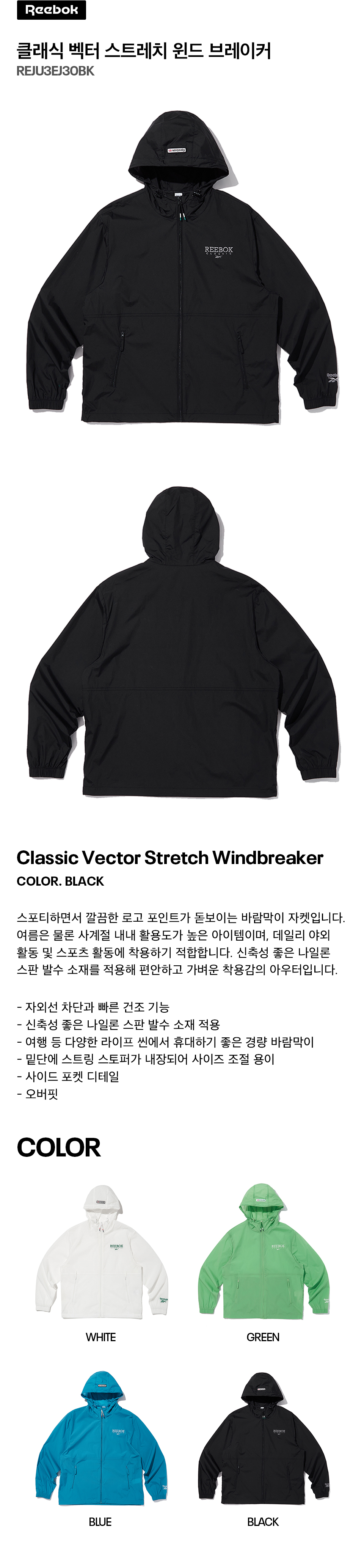 리복 클래식 벡터 스트레치 윈드 브레이커 블랙