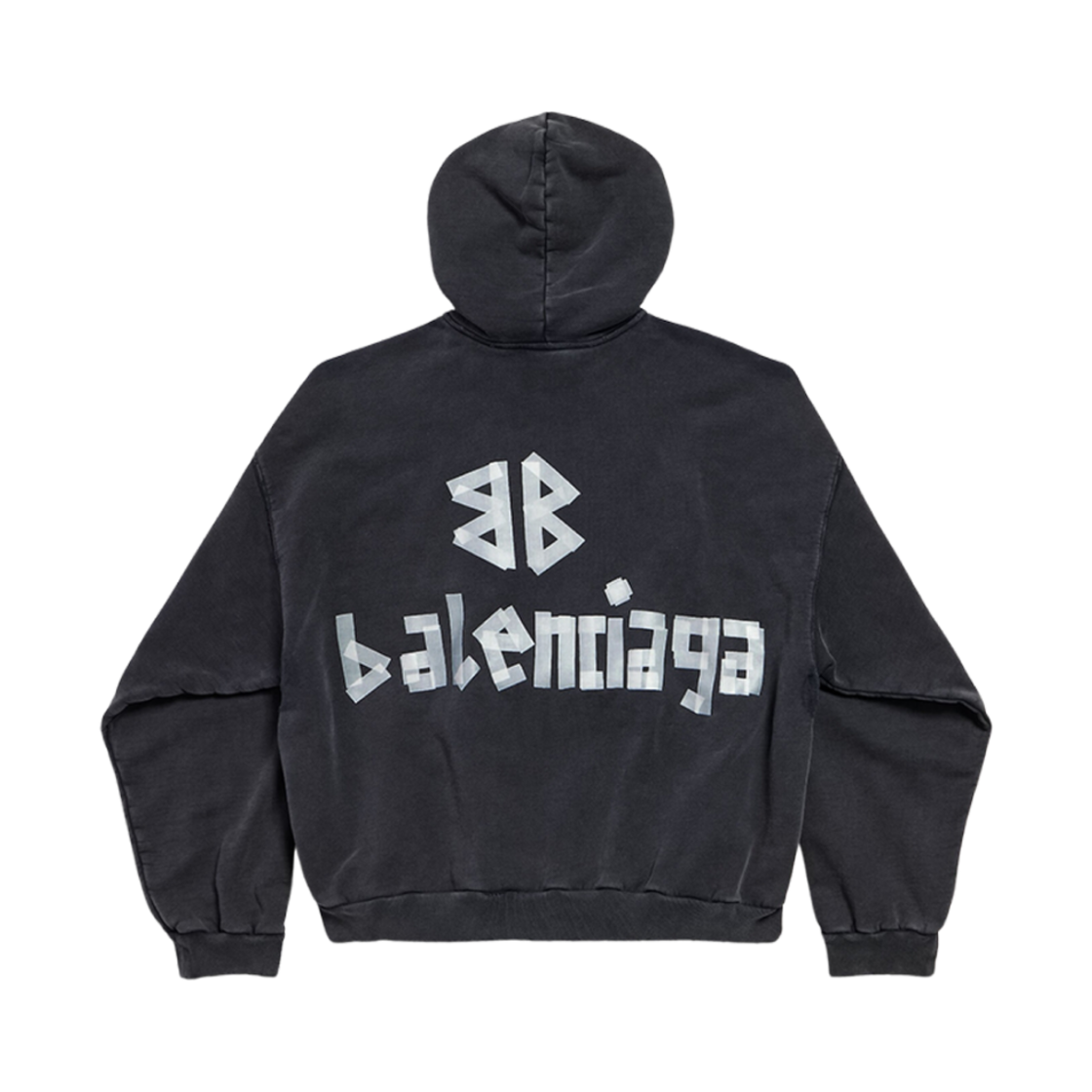 Balenciaga Tape Type Ripped Pocket Hoodie Black Faded