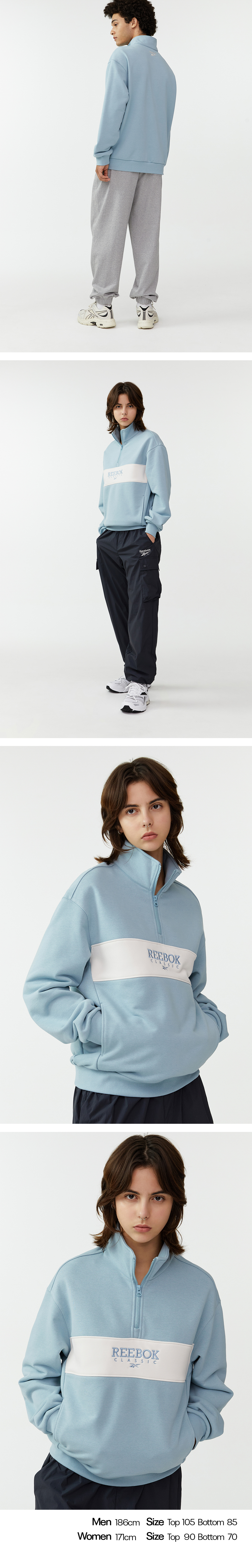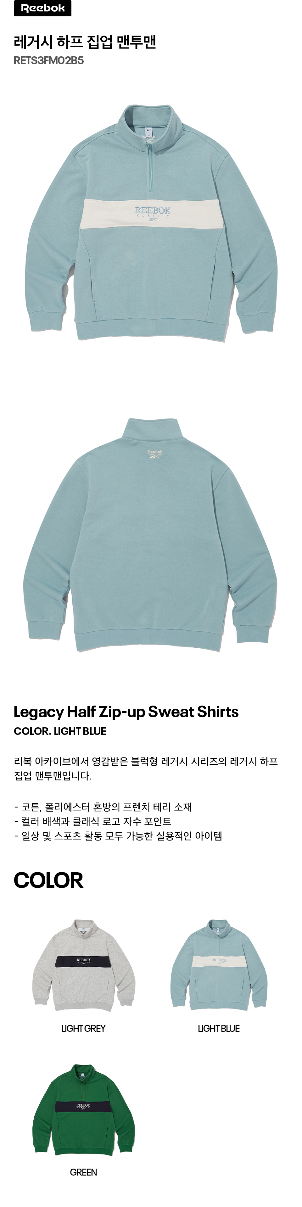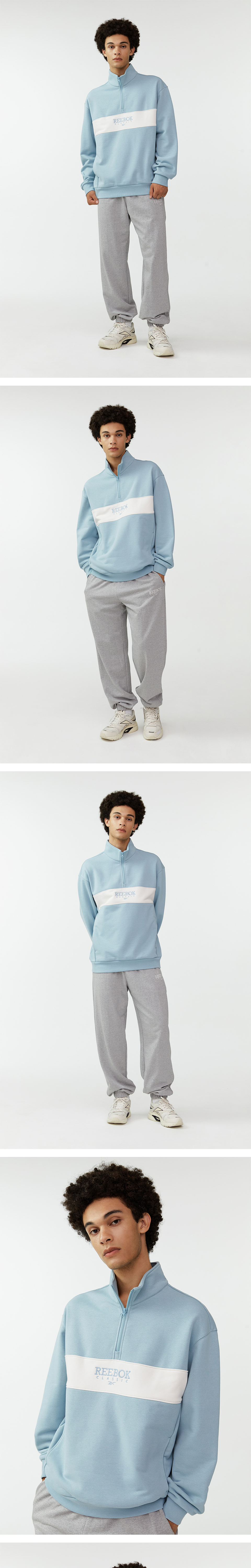 리복 레거시 하프 집업 맨투맨 라이트 블루