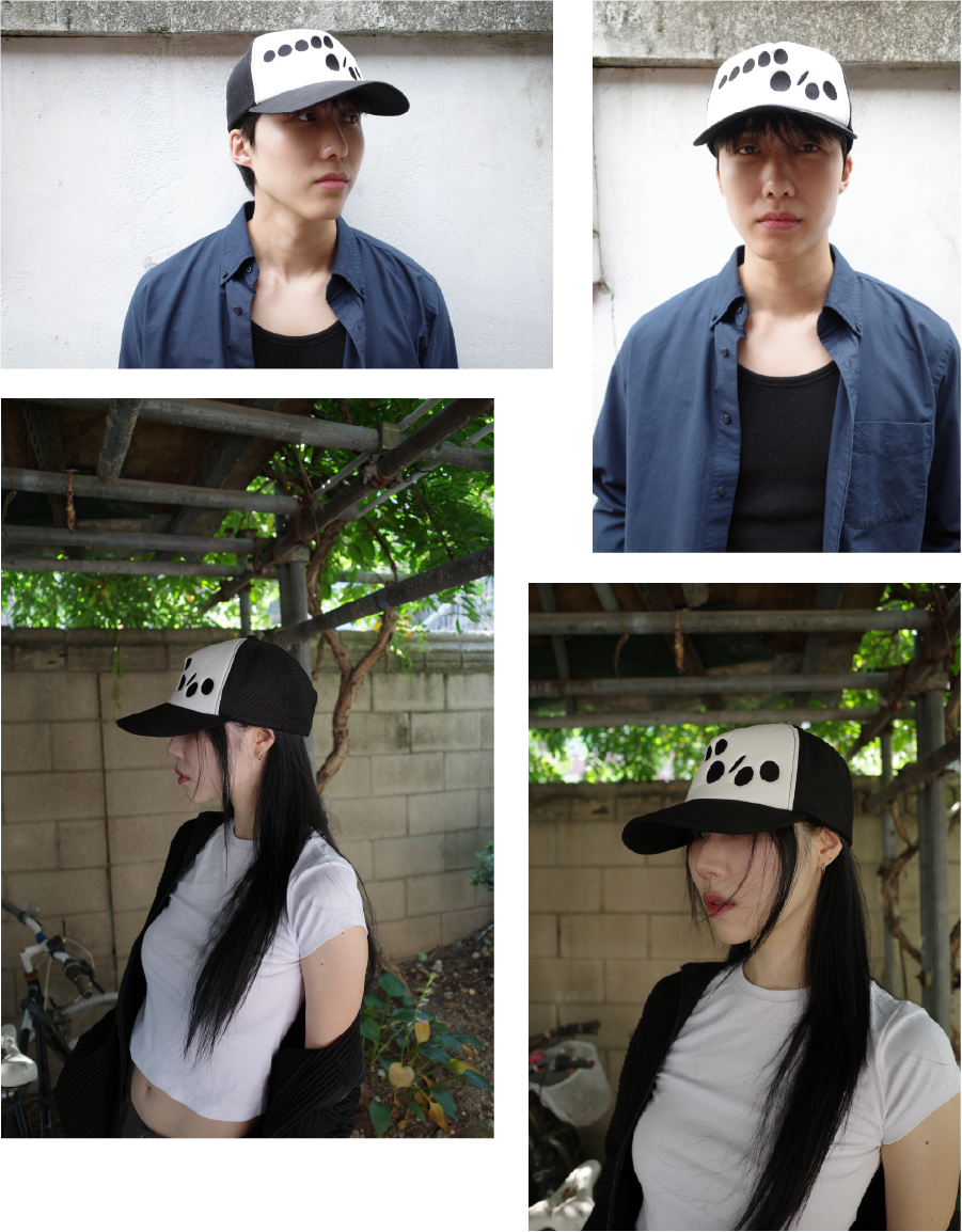 메쉬캡은 코튼+스펀지+코튼(이마 닿는 부분 변색 방지를 위한 이중 처리)로 바깥 면이 제작되어 있습니다. 하드한 각모와는 다른 재질로 제작 및 배송 중 구겨짐이 나타날 수 있습니다. 받으시는 제품 개체 간의 차이가 있으며 이 점 확인하시고 구매 부탁드립니다. 위 사항은 교환, 환불, 취소의 원인이 될 수 없습니다.
