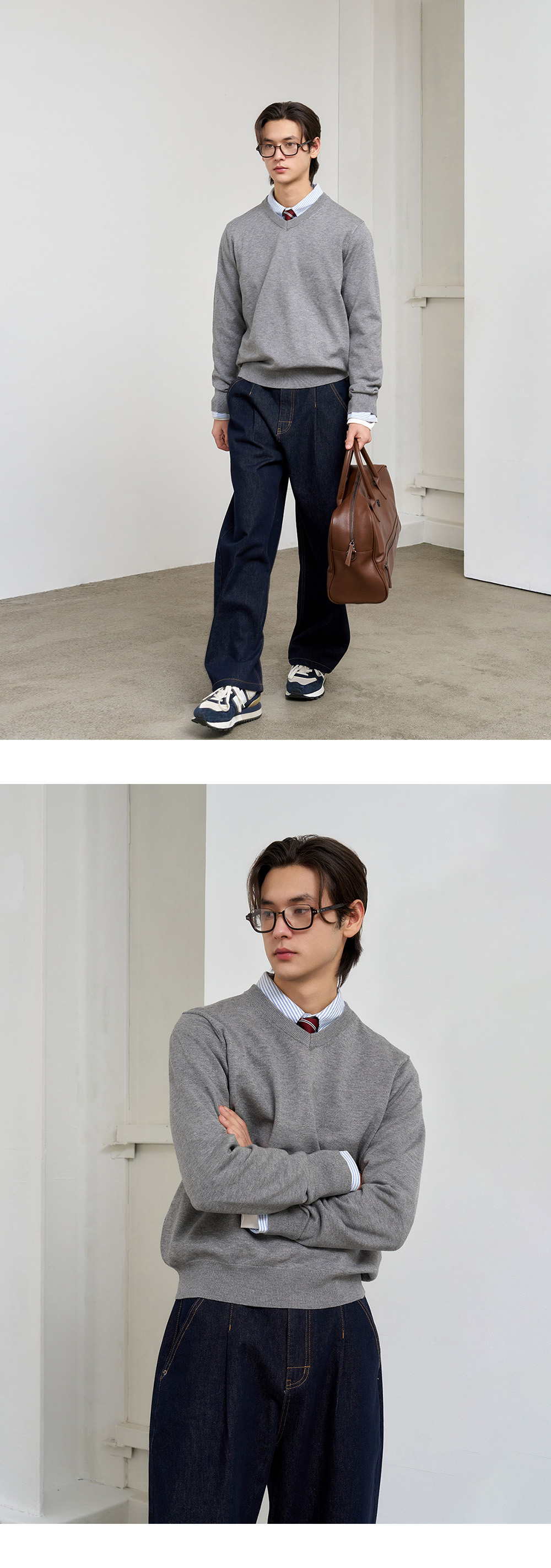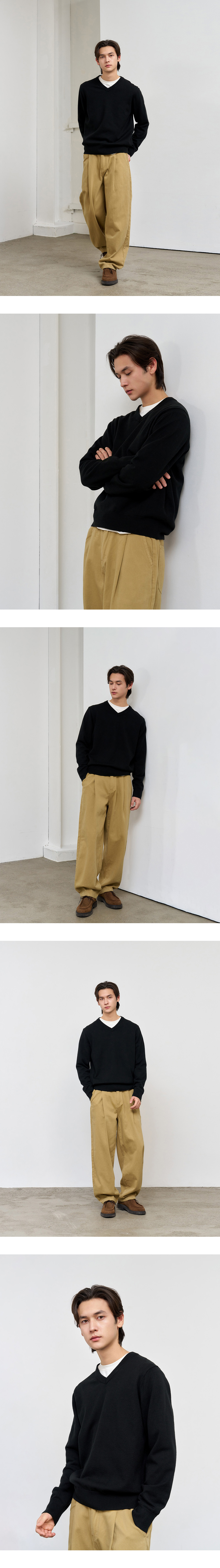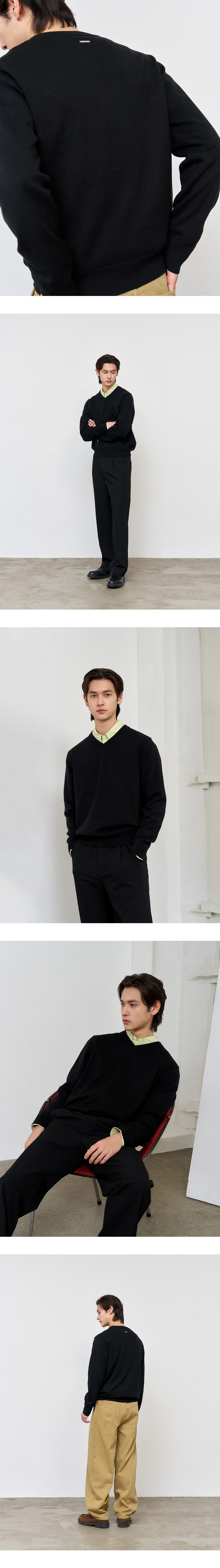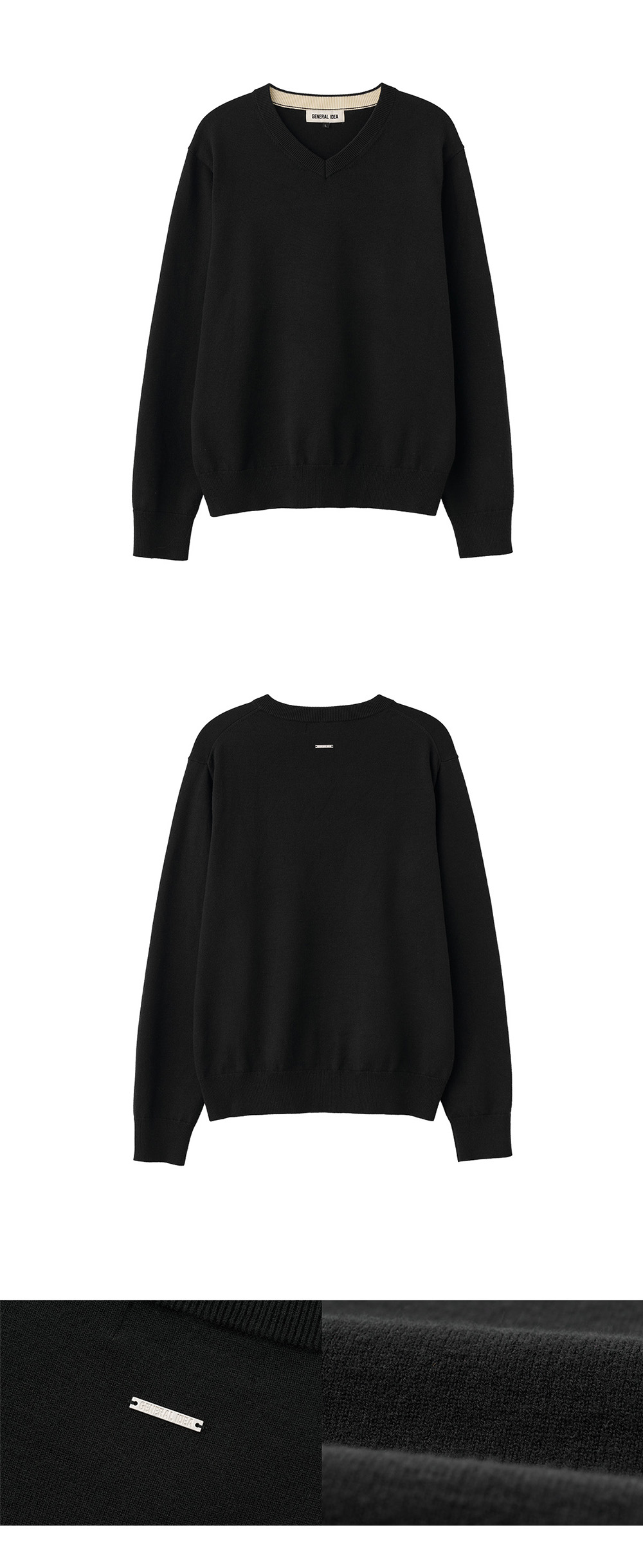 제너럴아이디어 맨 에센셜 미니멀 브이넥 풀오버 블랙