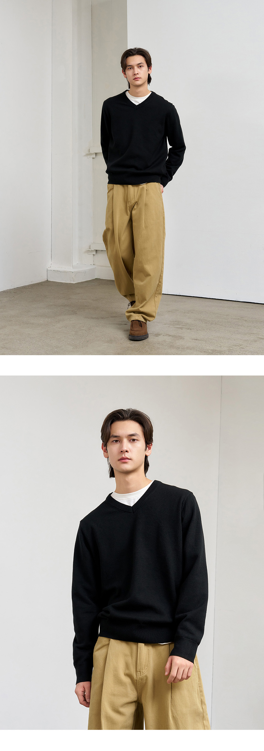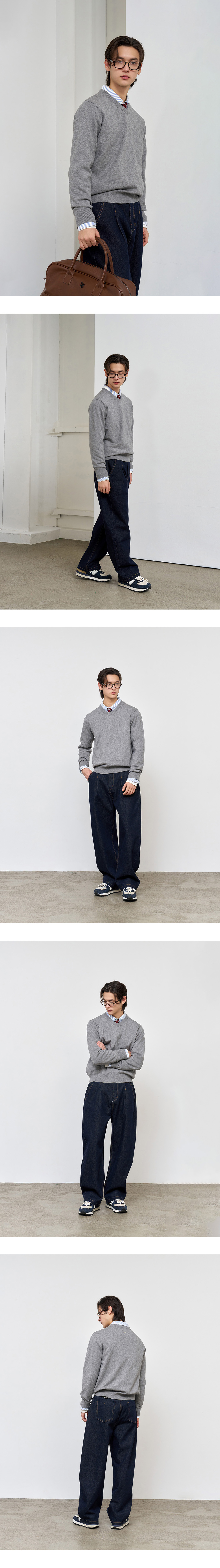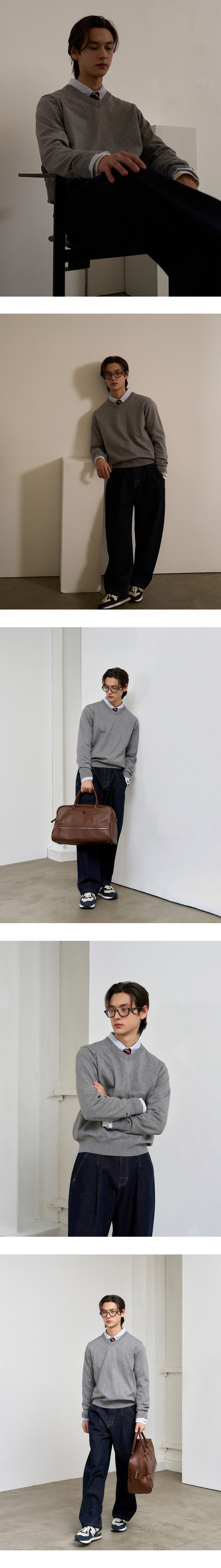 제너럴아이디어 맨 에센셜 미니멀 브이넥 풀오버 그레이