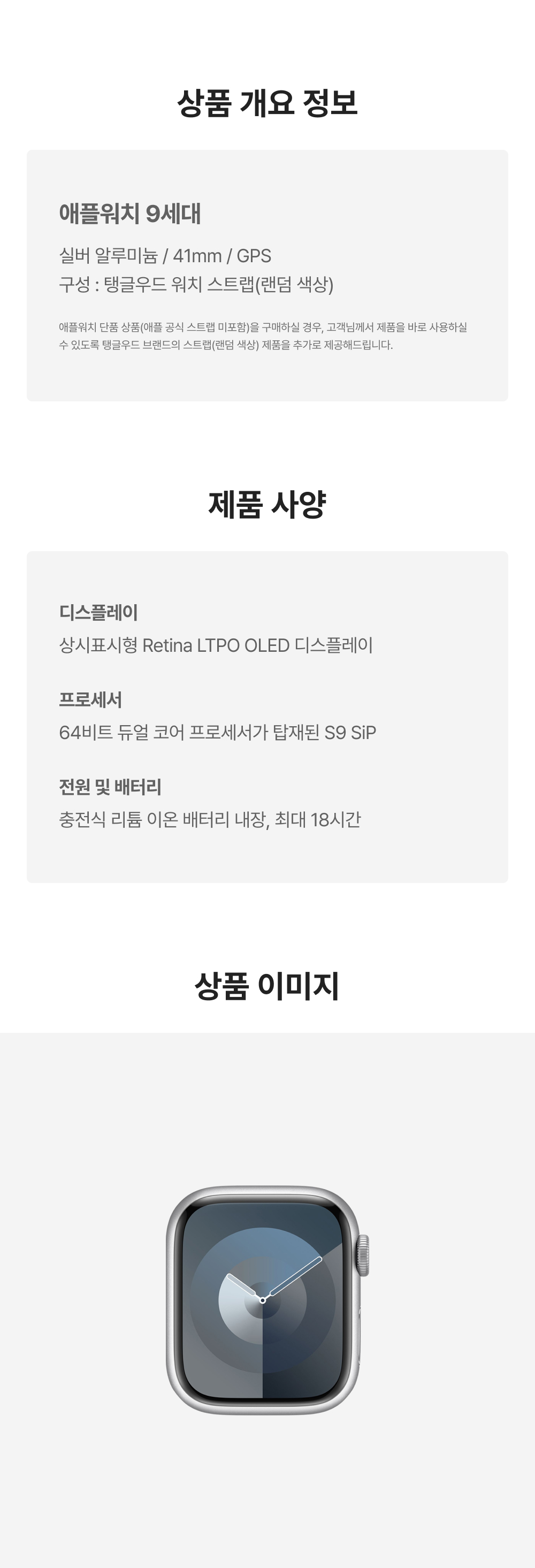 [S등급] 리퍼비시 애플워치 9 41mm GPS 실버 알루미늄 케이스