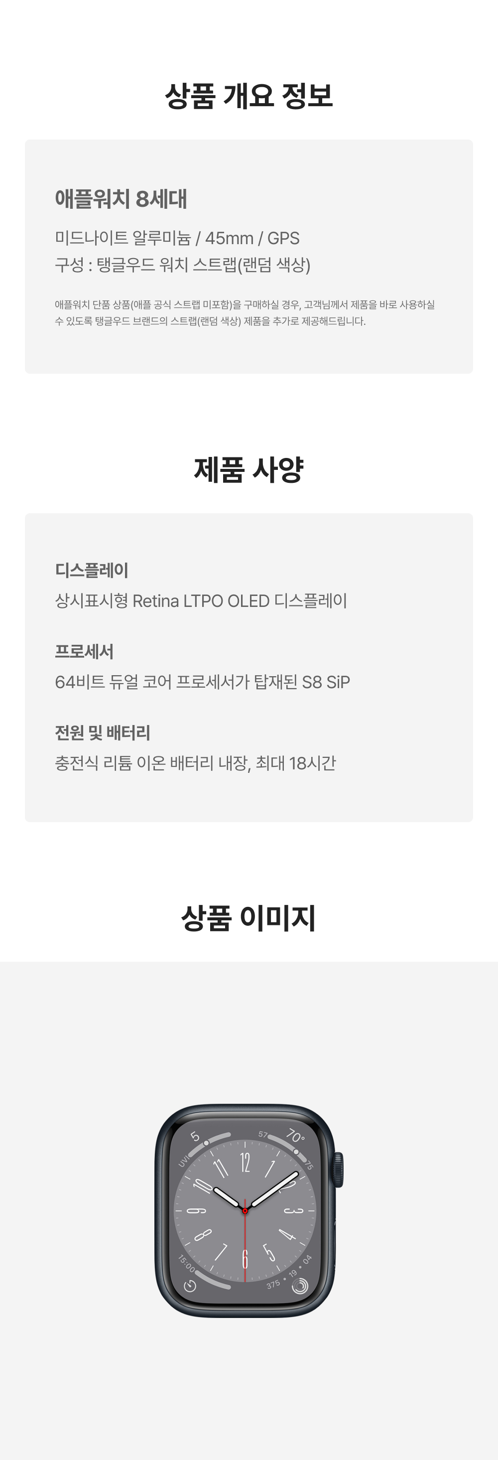 [A등급] 리퍼비시 애플워치 8 45mm GPS 미드나이트 알루미늄 케이스