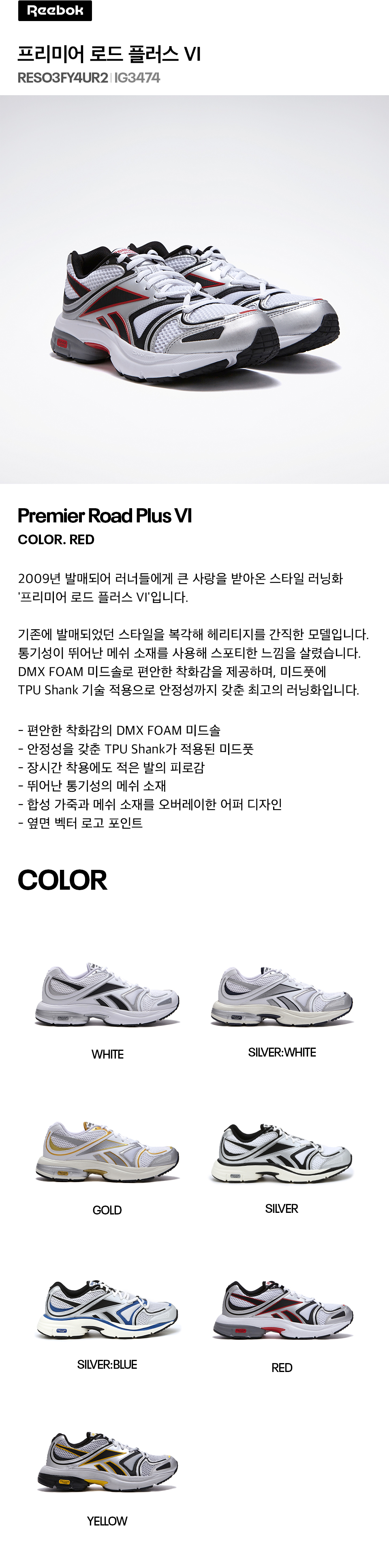 리복 프리미어 로드 플러스 VI 레드