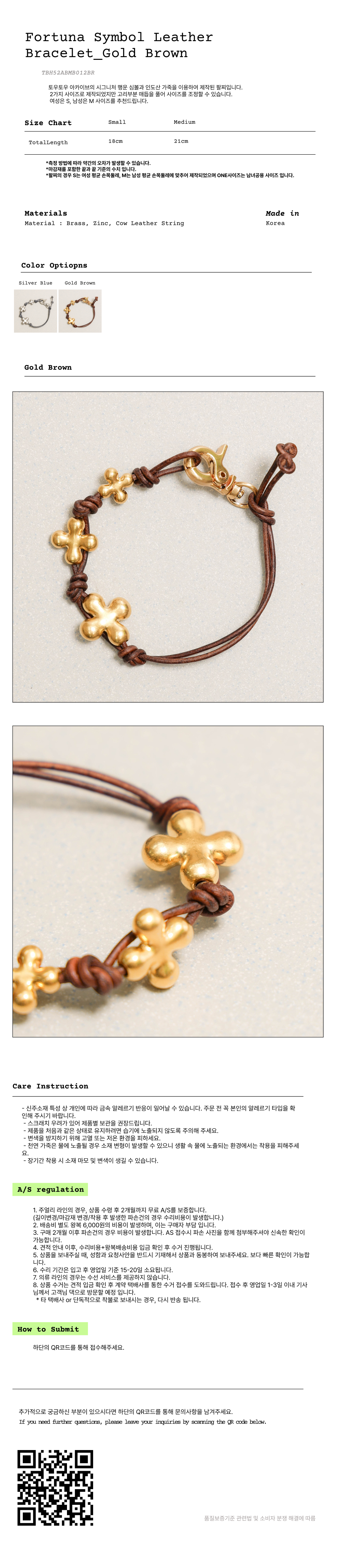 토우토우아카이브 포르투나 심볼 레더 팔찌 골드 브라운
