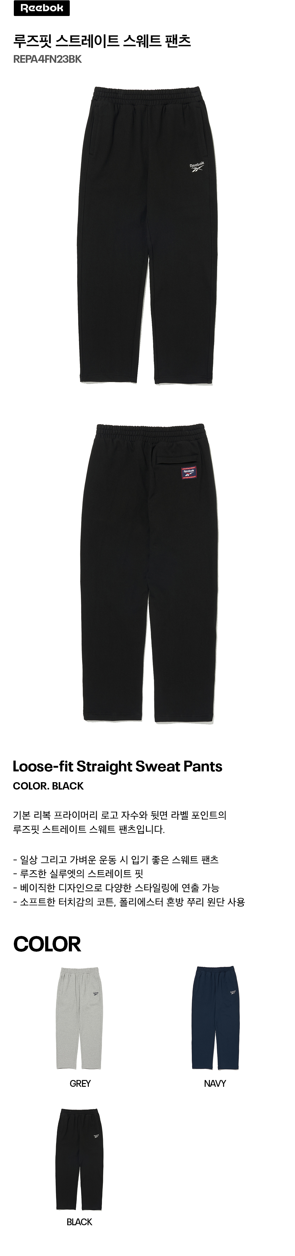 리복 루즈핏 스트레이트 스웨트 팬츠 블랙