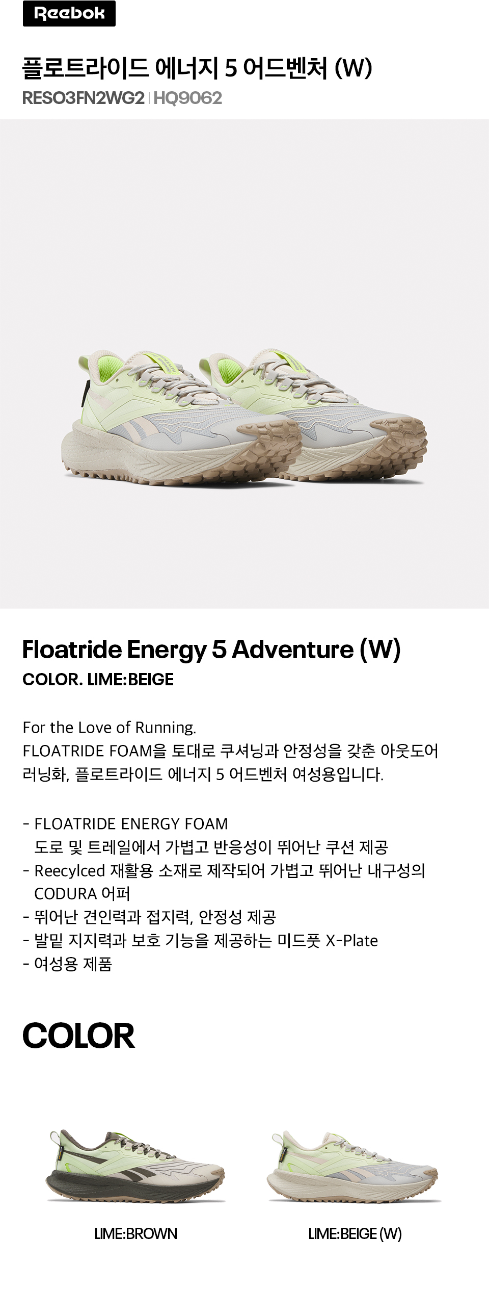 리복 플로트라이드 에너지 5 어드벤처 우먼 라임 베이지