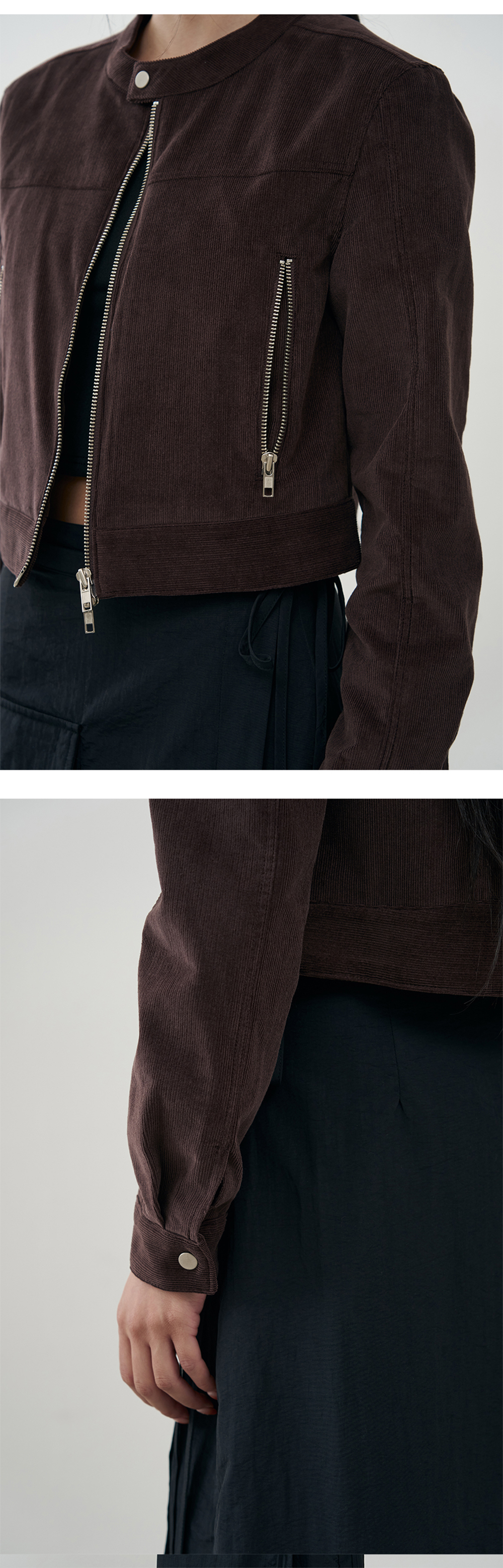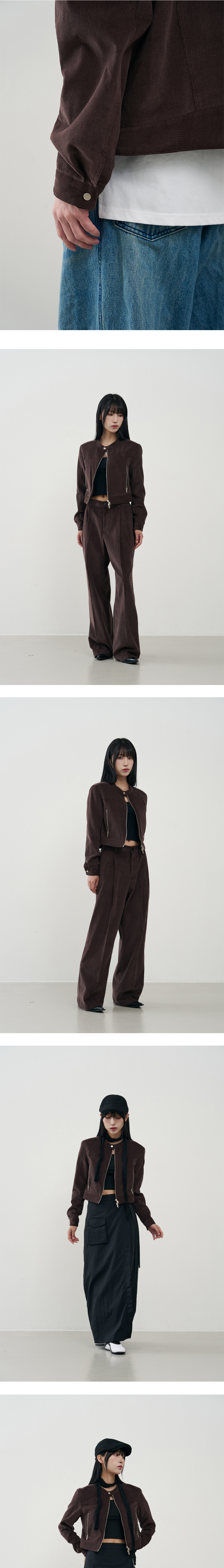 부드러운 터치감과 밀도높은 코튼 소재를 활용하여 캐주얼하며 도시적인 실루엣 그리고 봄, 가을 간절기에 적합한 두께감과 착용감에 초점을 맞춘 제품으로 다양한 코디에 활용하실 수 있습니다. · 전면, 사이드 지퍼 YKK 투웨이 적용 · 다리가 길어 보이는 효과를 주는 트렌디한 크롭 기장 · 간절기 착용하기 좋은 두께와 자연스레 떨어지는 소재감 · 은은하게 광택감을 지닌 16골 코듀로이 텍스처