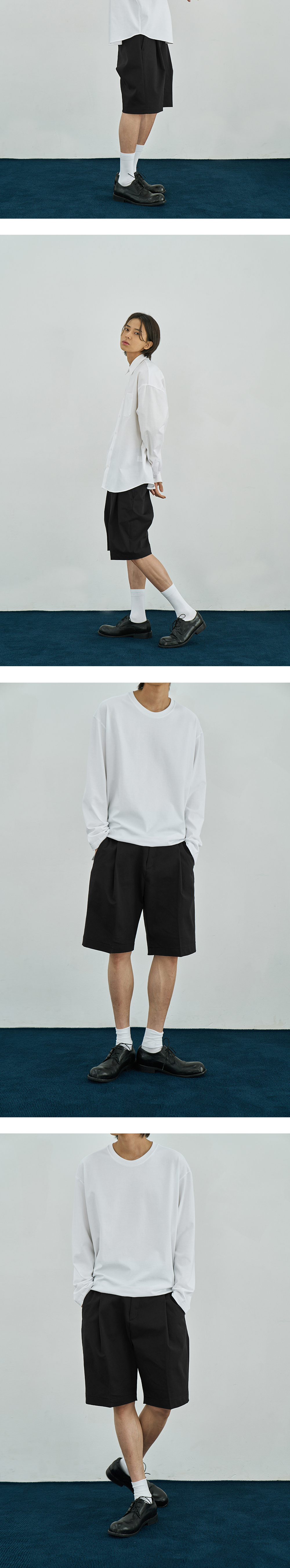 어레이드 와이드 원턱 밴딩 하프 치노 팬츠 블랙