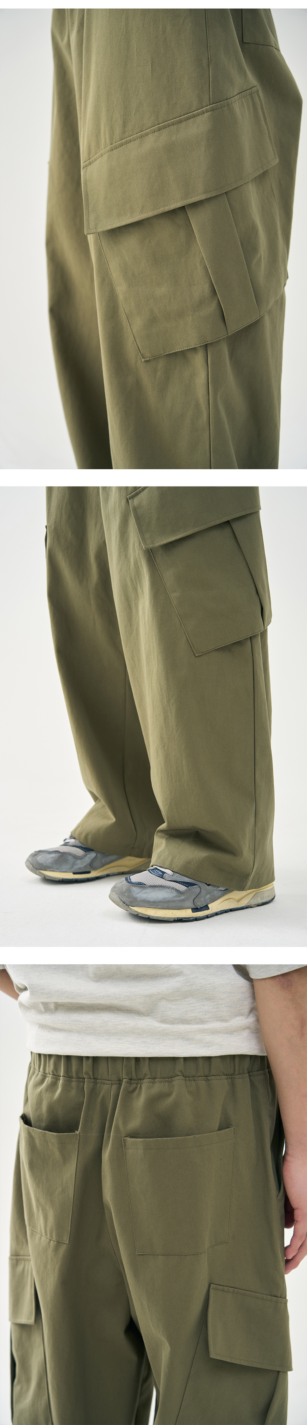 Arrayed Oblique Oversized Cargo Banding Chino Pants Khaki